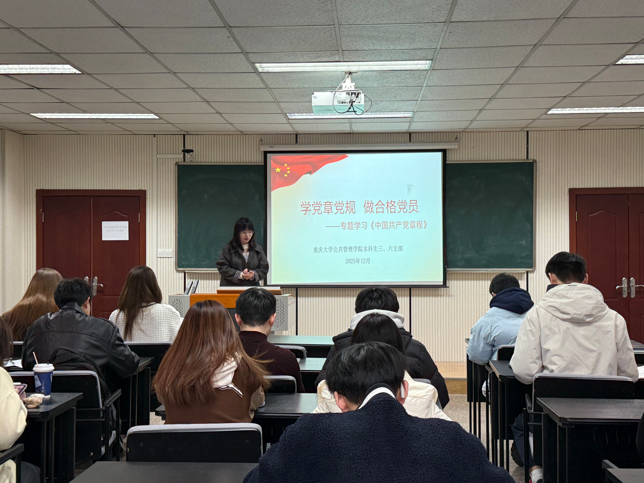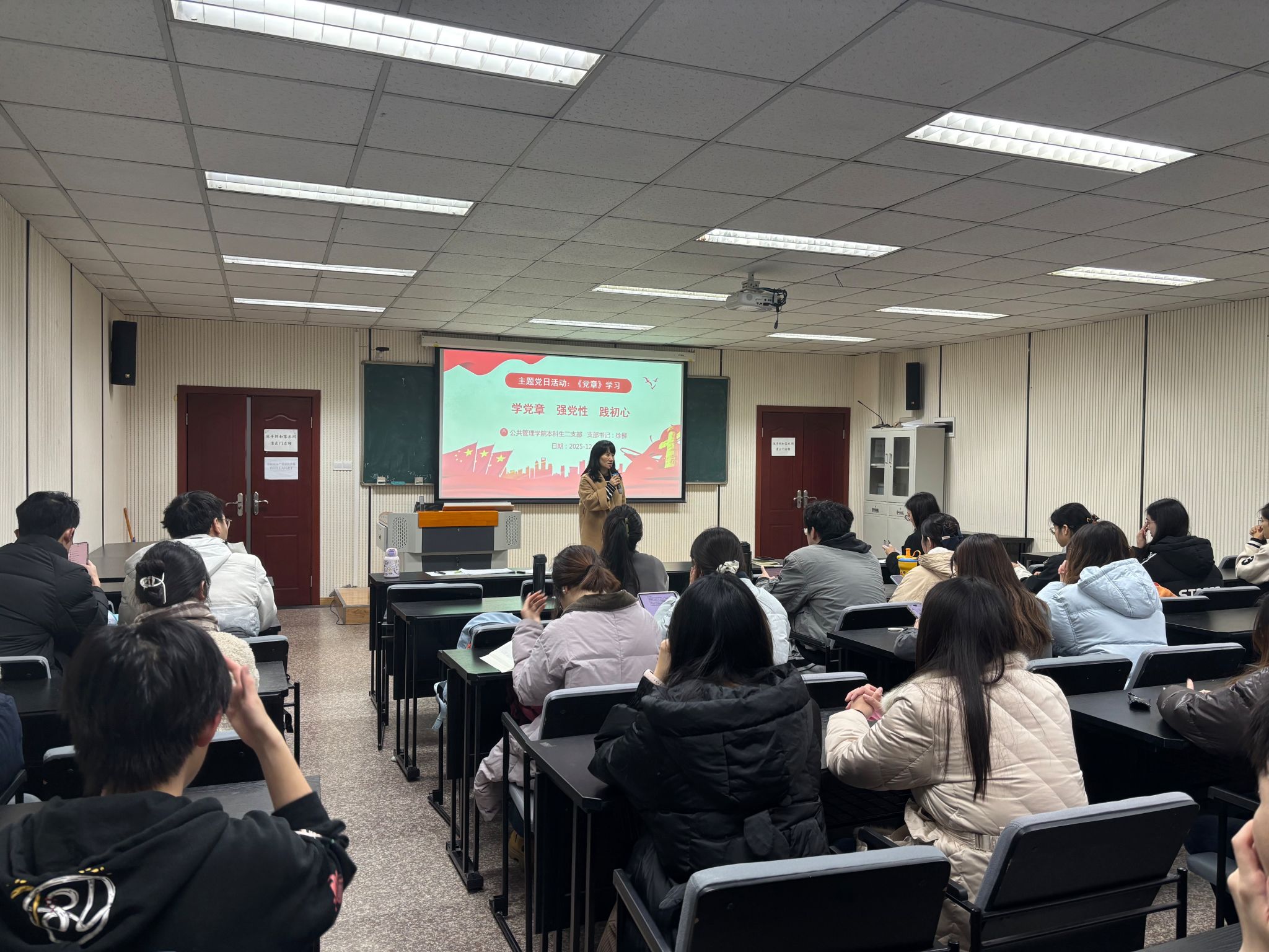 2025-12-19为深入学习贯彻习近平新时代中国特色社会主义思想和党的二十大精神,进一步增强支部党员的党章意识与党性修养,引导全体党员全面准确理解党章内容、自觉践行党章要求,2025年12月11日下午14:00,肉视频 本科生三、六支部在肉视频 楼104教室联合开展了“支部书记讲党章—学党章党规 做合格党员”党章专题学习活动。本次活动由本科生三支部书记李庆主持,全体党员参加。活动伊始,李庆书记围绕《中国共产党章程》的重...