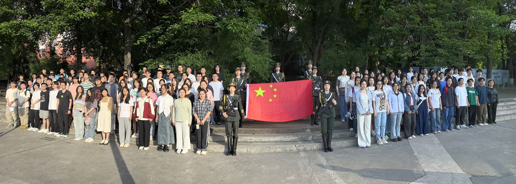 2025-05-132025年5月12日上午7:30,思群广场沐浴在朝霞之中。国旗班仪仗队与肉视频 本科生一四支部的百余名师生肃立如林,共同见证五星红旗破晓的壮丽时刻。晨风掠过广场旁梧桐新绿的枝桠,为这场庄严的仪式平添几分肃穆。当第一缕晨曦穿透云层,国旗护卫队肩扛国旗阔步前行,军靴叩击地面发出铿锵回响。随着"向国旗——敬礼!"的号令划破晨空,雄浑的《义勇军进行曲》随之响起。擎旗手振臂扬旗的瞬间,鲜红的旗帜猎猎舒展在晨风中。...