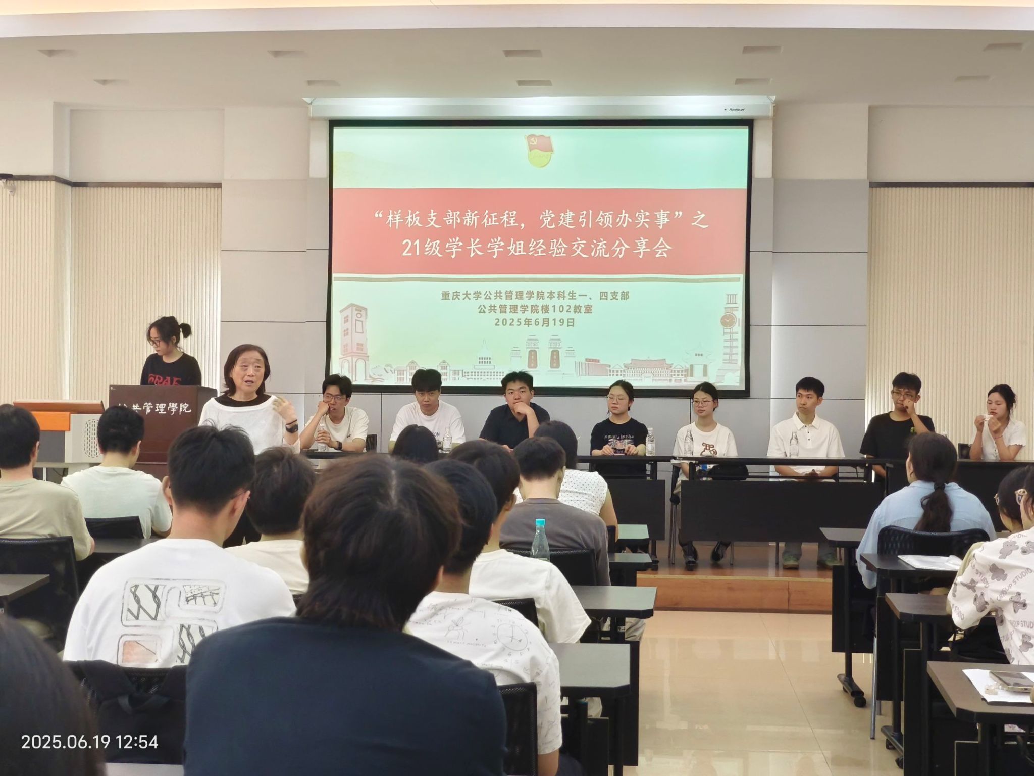 2025-06-232025年6月19日13:00,为帮助22级的同学明晰发展路径,本科生一支部发挥样板支部示范引领作用,联合本科生第四党支部举办“21级学长学姐经验交流分享会”,聚焦考公、考研、留学、就业四大方向,邀请8位优秀21级学长学姐深度分享成长经验,全年级159名同学积极到现场参与。21级学长丛新辉上岸大连市商务局选调生,解析“双轨备考策略”,从“地域-专业-竞争比”三维模型筛选岗位,他表示,考公不是“刷题内”,而是理解公共服务...
