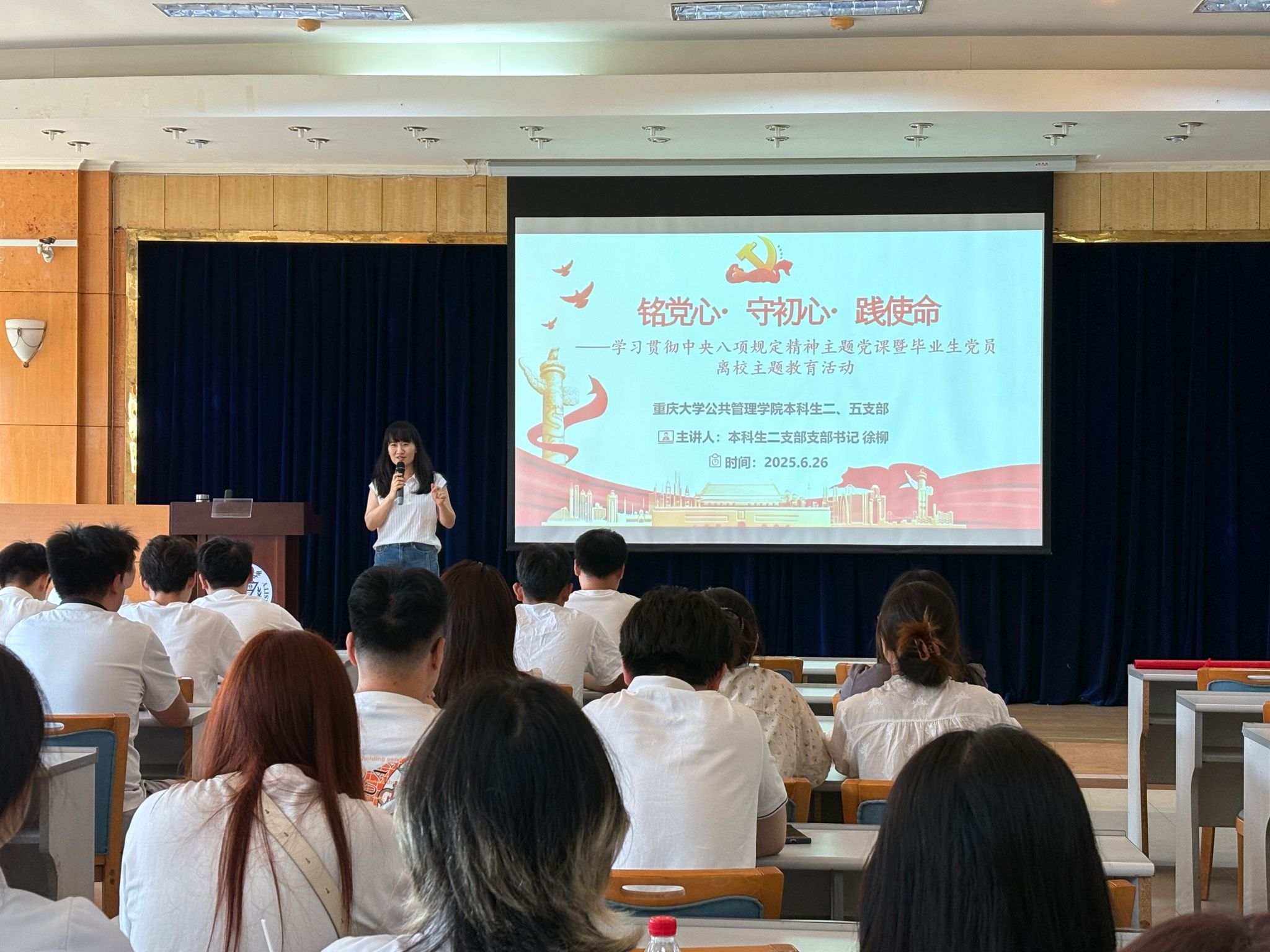 2025-07-04为深入学习贯彻中央八项规定精神,扎实推进基层党支部作风建设走深走实,进一步强化对毕业生党员的离校教育工作,2025年6月26日下午15:00,肉视频 开展了“铭党心·守初心·践使命”学习贯彻中央八项规定精神主题党日暨毕业生党员离校主题教育。活动由本科生二支部书记徐柳主持,本科生二、五支部全体党员参加。活动伊始,徐柳老师以“学习贯彻中央八项规定精神”为主题为本科2021级全体毕业生党员讲授了最后一堂党课。徐柳老师详细...