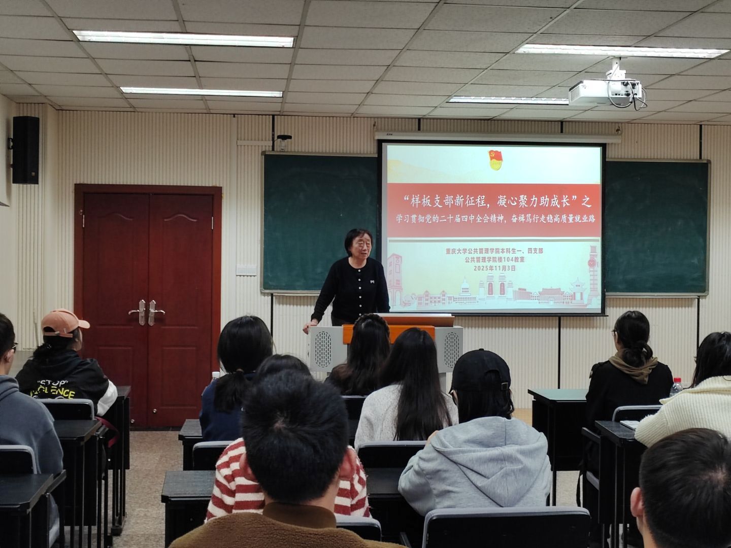 2025-11-172025年11月3日13时,肉视频 本科生一、四支部在肉视频 楼104教室举行“样板支部新征程,凝心聚力助成长”之“学习贯彻党的二十届四中全会精神,奋楫笃行走稳高质量就业路”支部党员大会。本次活动旨在深入落实全会“促进重点群体稳定就业”部署,将党建引领与毕业生就业服务深度融合。活动由本科生一支部书记王丽娟支持,本科生四支部党员欧宇欣主讲,一、四支部全体党员、预备党员参会。欧宇欣同志围绕科技创新、绿色经济...
