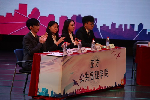 二辩谢欣露的从容与条理令人印象深刻;四辩刘洋儒雅的气质则让人在剑拔弩张的辩论场上也如沐春风。