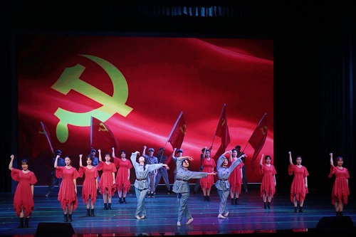 带来的这首《党旗飘飘》整齐流畅、巧思精构,令广大师生耳目一新,无疑是一场有剧情、有温度、更有深度的视听盛宴,赢得了台下观众的阵阵掌声。