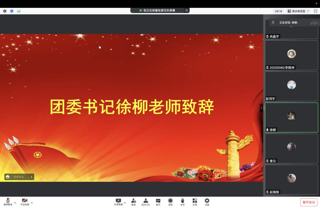 团委学生会对本科生2021级纳新竞选会议如期于线上举行。学办主任兼19级辅导员王丽娟、团委书记兼21级辅导员徐柳、20级辅导员包唅、20级团委学生会主席团成员以及21级参与本次竞选的同学参加会议。