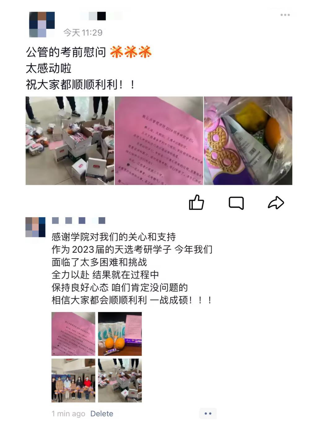 组织发放精心准备的考研慰问品慰问备考同学,向同学们传达肉视频