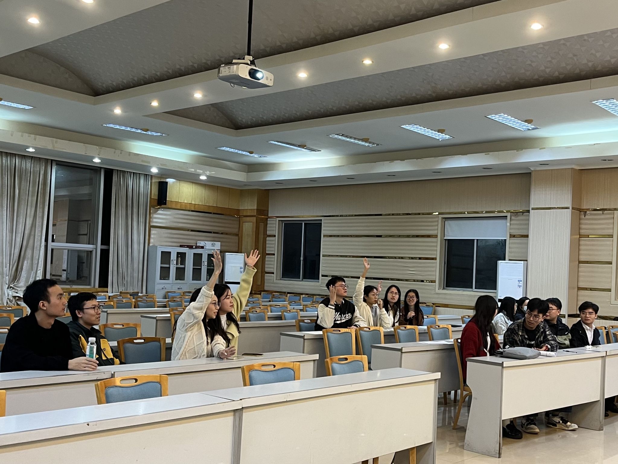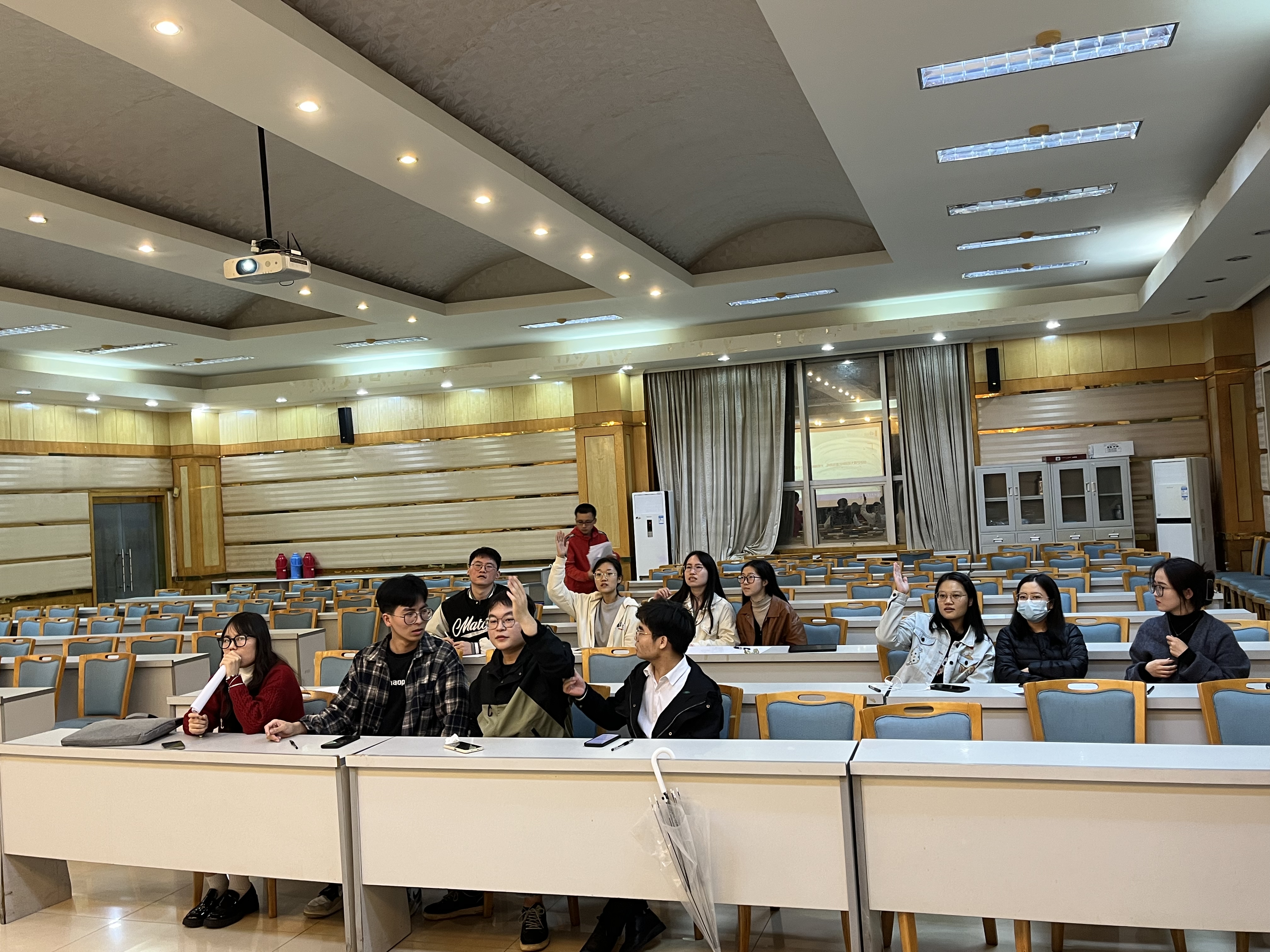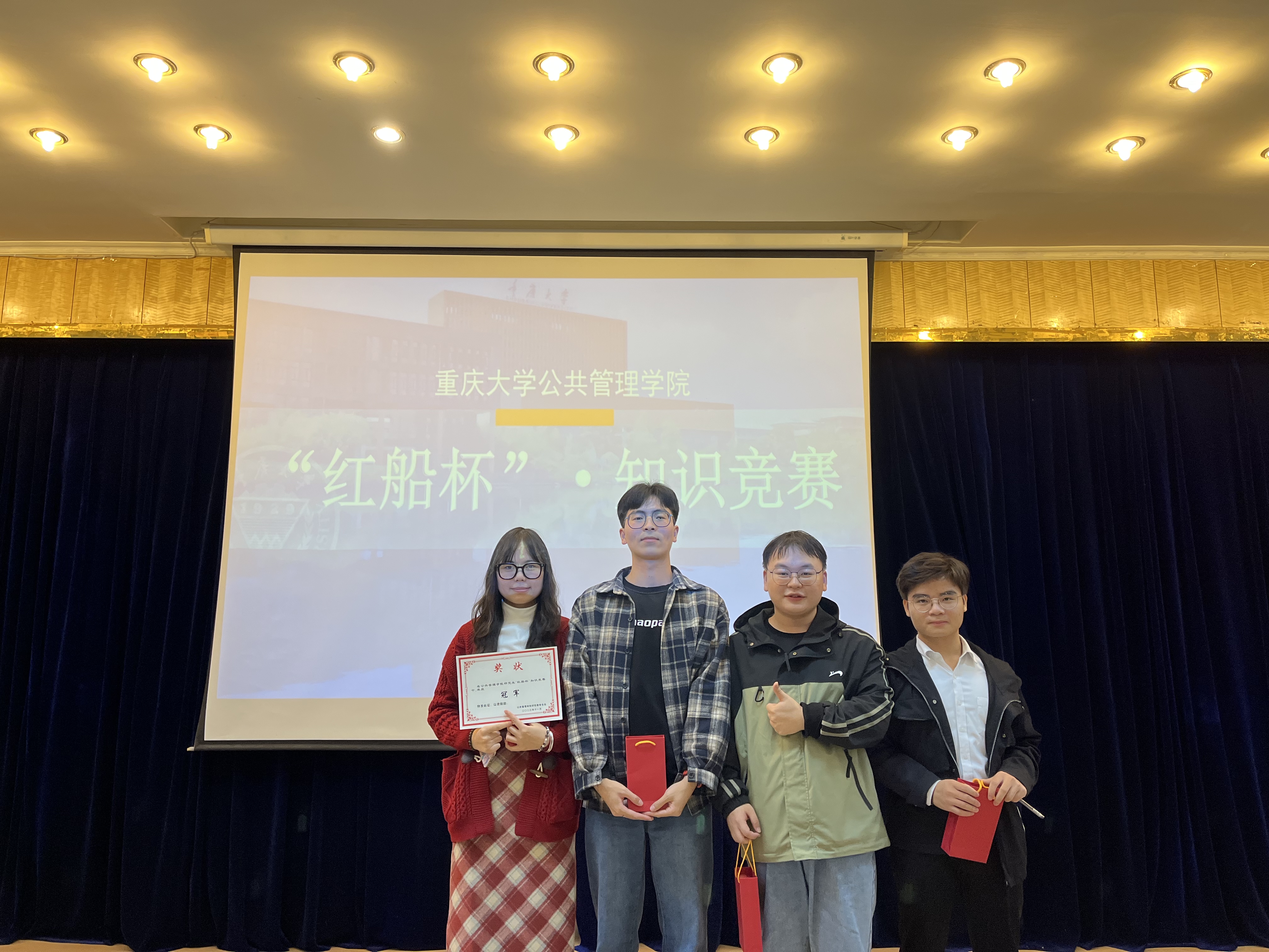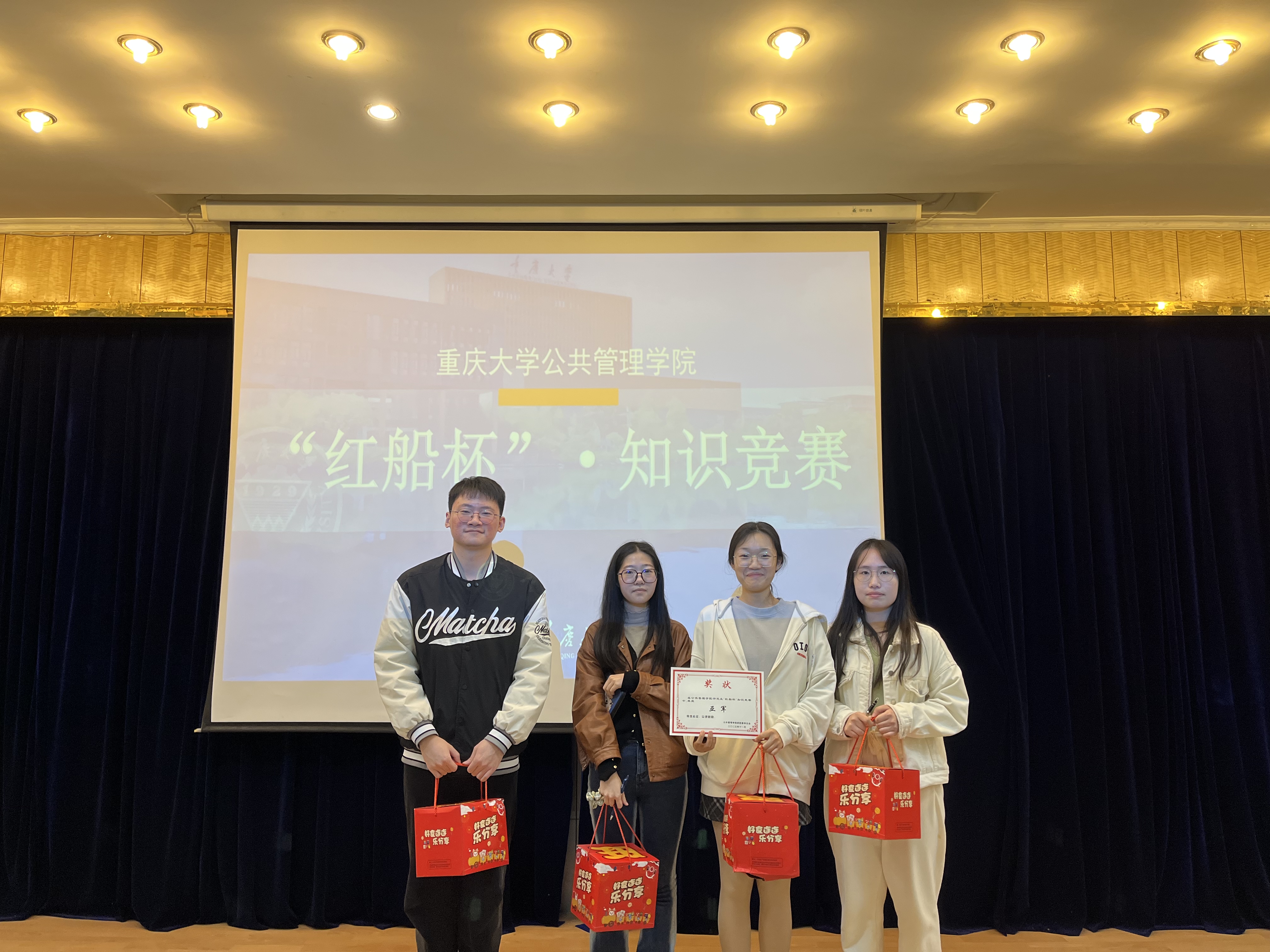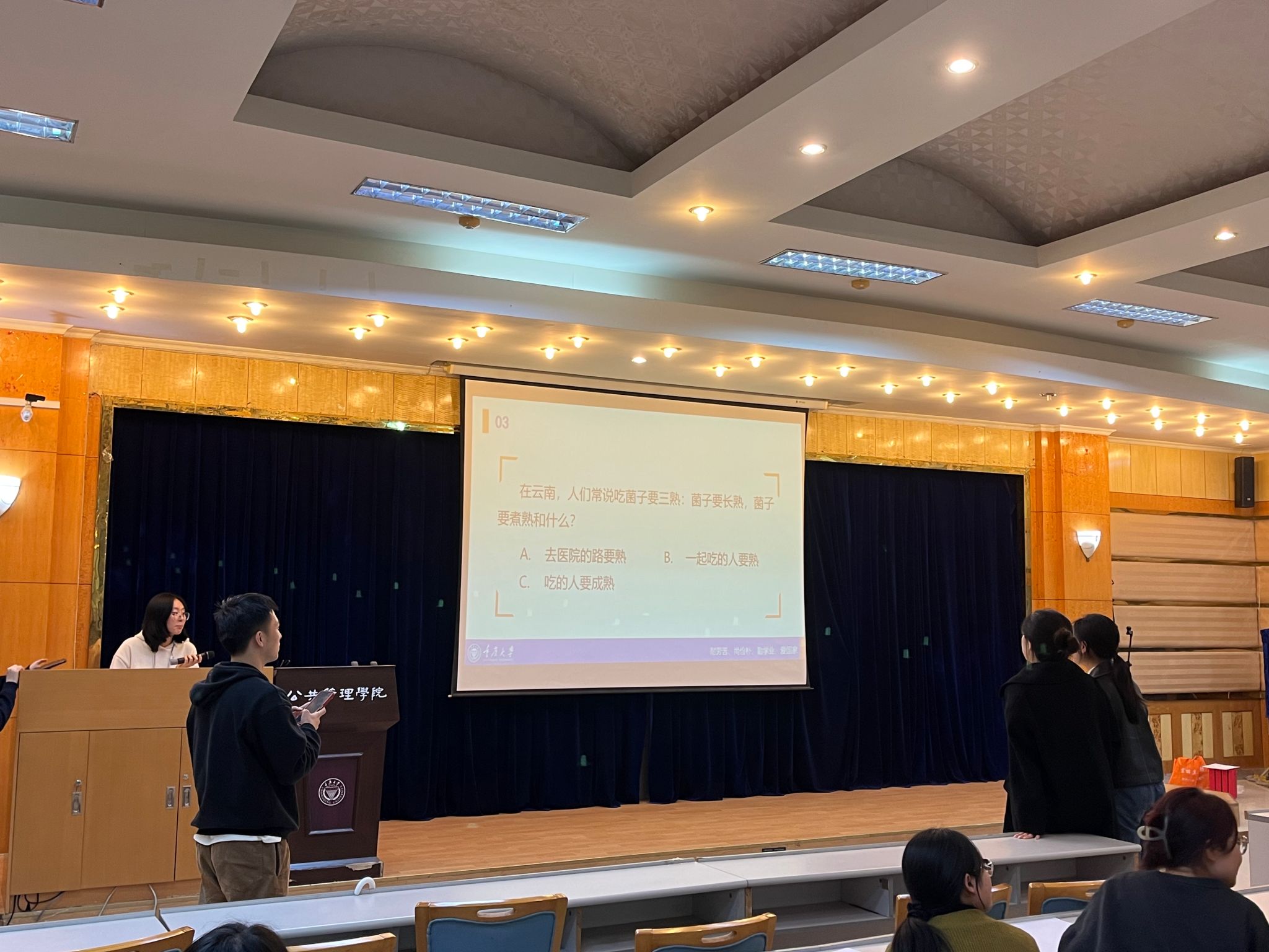 楼202教室举行,此次比赛共有25支队伍参与角逐,每支队伍由四名同学组成。比赛共分为三个阶段,第一阶段为小组热身赛,需要小组全体成员都参与,在规定的时间内尽可能多地答题,最终选出6支队伍晋级下一阶段比赛;第二阶段必答题中,每个小组指派2名成员参与答题,有一次求助智囊团机会,最终选出3支队伍晋级下一阶段比赛;第三阶段为抢答题,小组全体成员参与,其中1名队员举牌为队伍获得抢答机会,最终决出冠亚季。