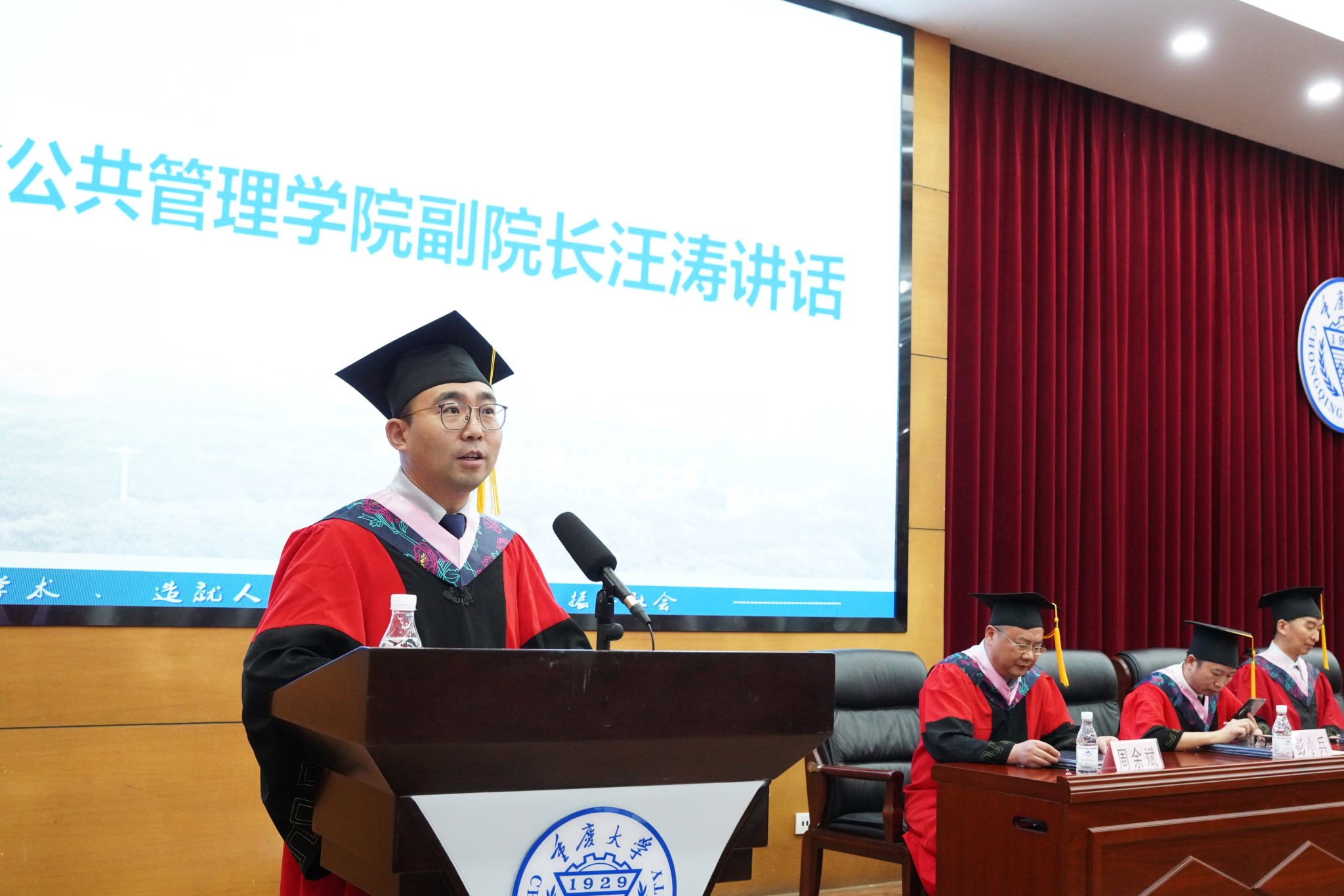 由衷地感到欣慰和骄傲。他对毕业生们提出以下期许:一是要做红色的公管人;二是要做厚重的公管人;三是要做朝气的公管人;四是要做卓越的公管人。他衷心地祝愿各位同学,勇敢地遨游世界,勇敢地闯荡人生,勇敢地创造未来,在实现强国建设、民族复兴伟业的征程中展现青春作为、彰显青春风采、贡献青春力量,努力成为影响世界、引领世界的新时代公管人。