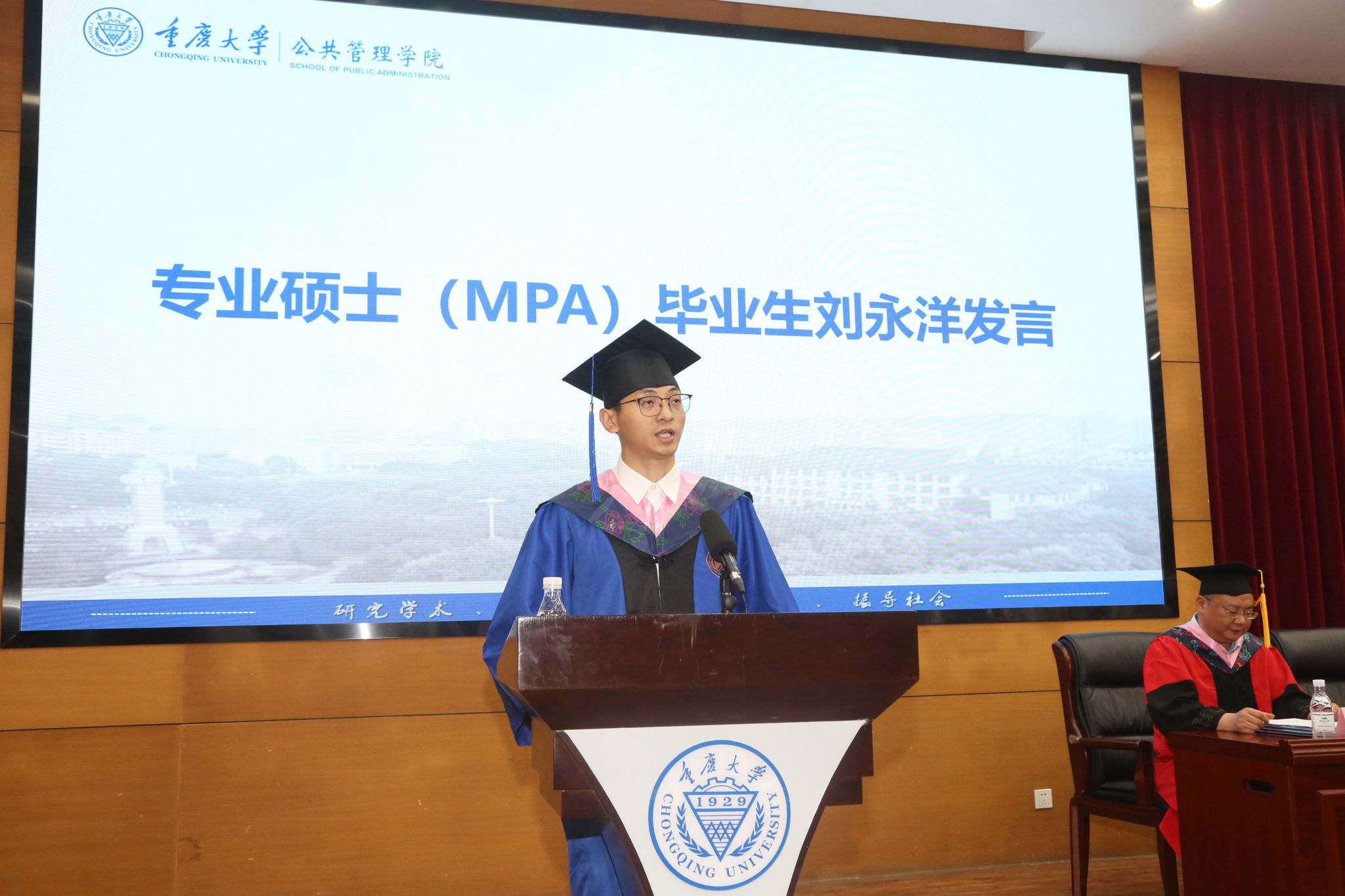 专业学位硕士毕业生代表刘永洋发言,他回眸了在重大的三年时光,真诚地感恩母校、肉视频