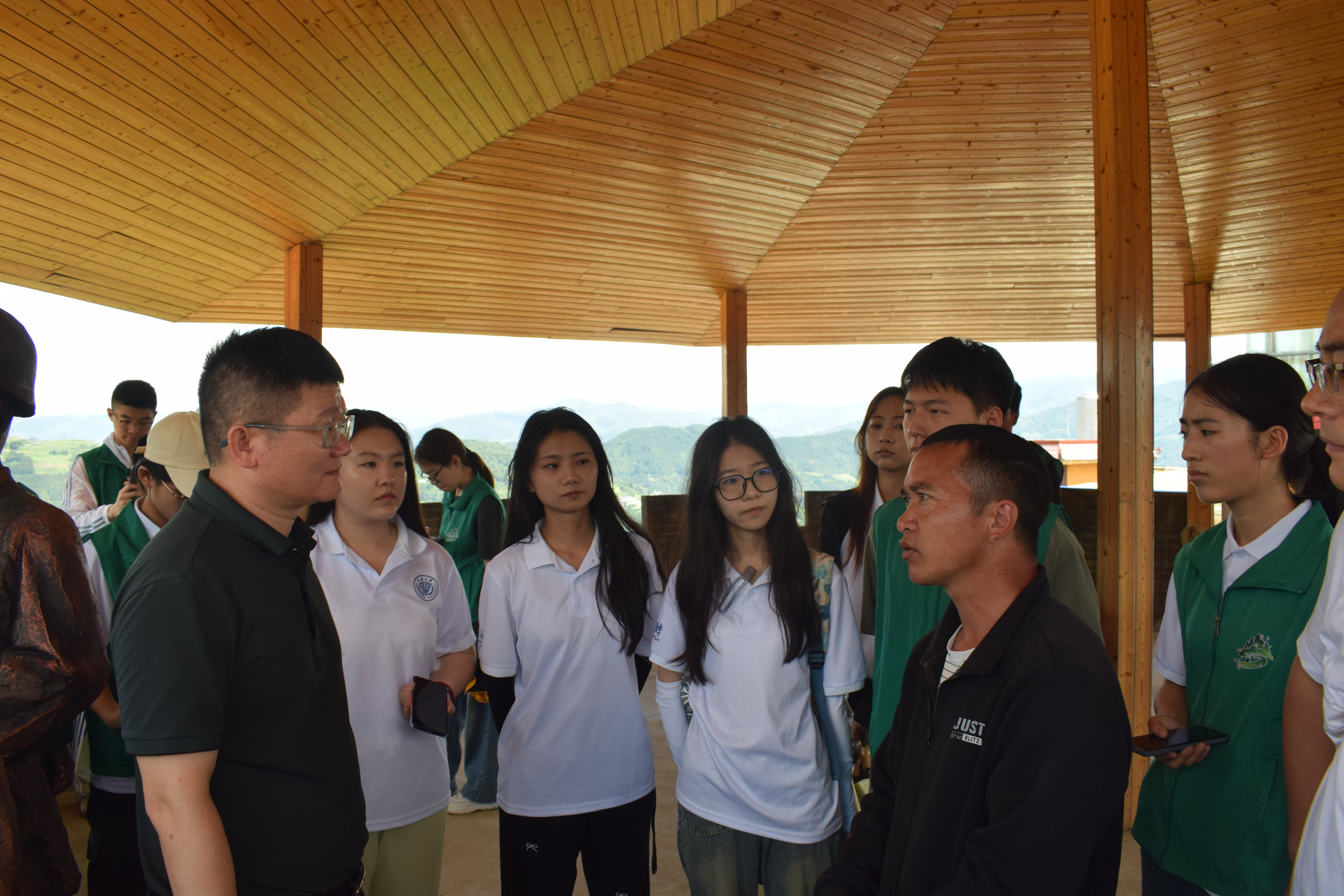 大头村拉祜寨曾是绿春县贫困程度最深、致贫原因最复杂的村寨。在党和政府以及社会各界的大力帮扶下,拉祜族同胞们的生活状况和精神面貌焕然一新,实现了“一步跨千年”的伟大变迁。同学们走进村民家中与村民们促膝长谈,细致入微地探寻他们的生活轨迹与产业风貌,不仅深入了解当地经济生态与民生百态,更深刻认识到各民族的团结协作是实现乡村振兴和中华民族伟大复兴的重要力量。