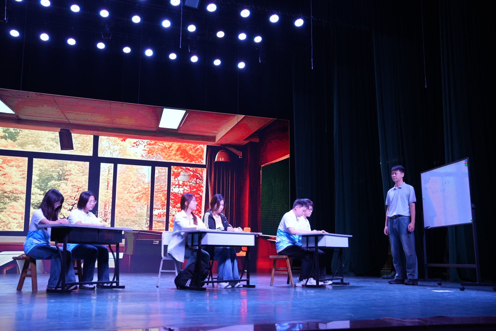 第五届校园心理情景剧比赛的线下展演中。所有参演同学在肉视频