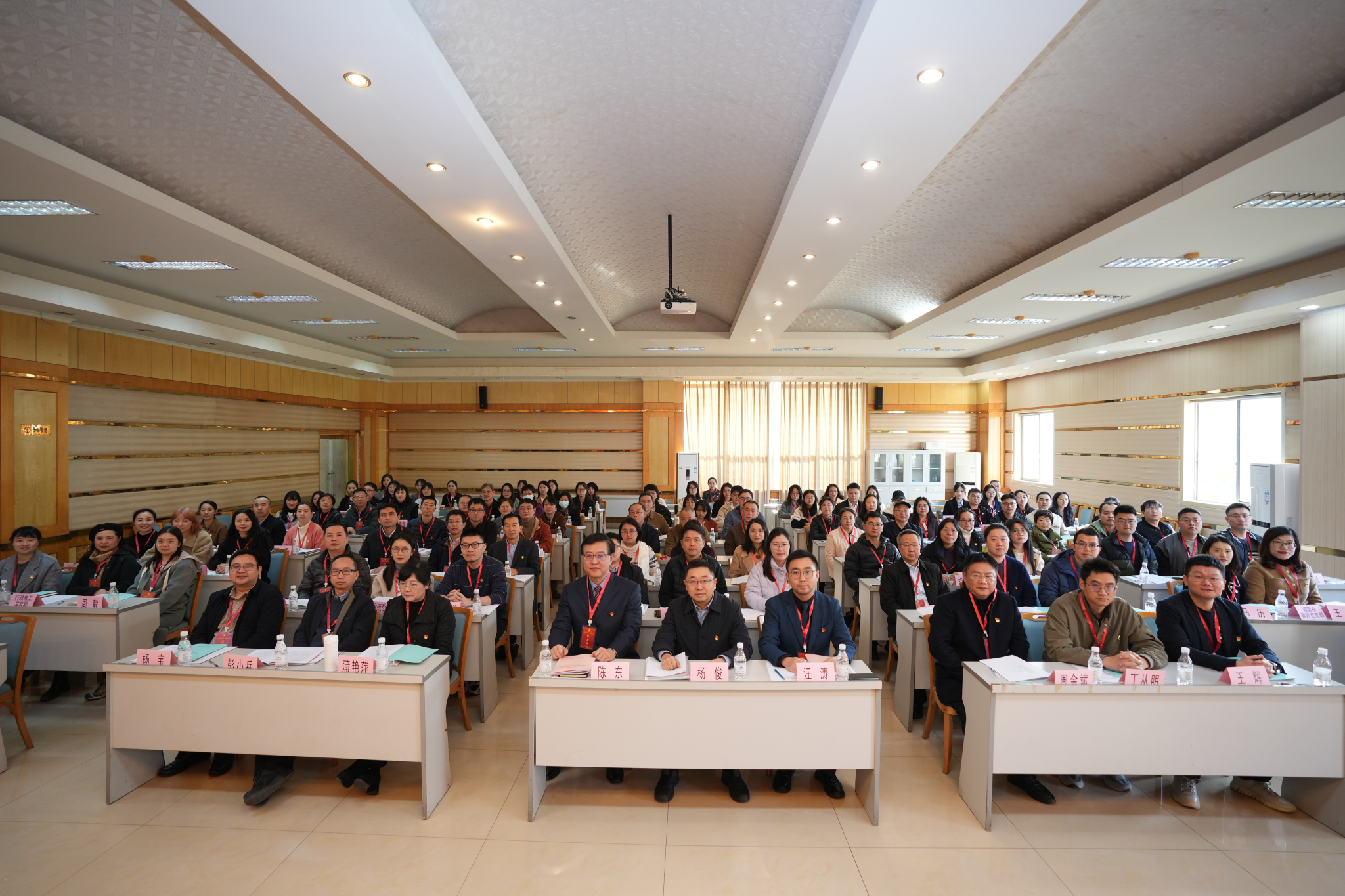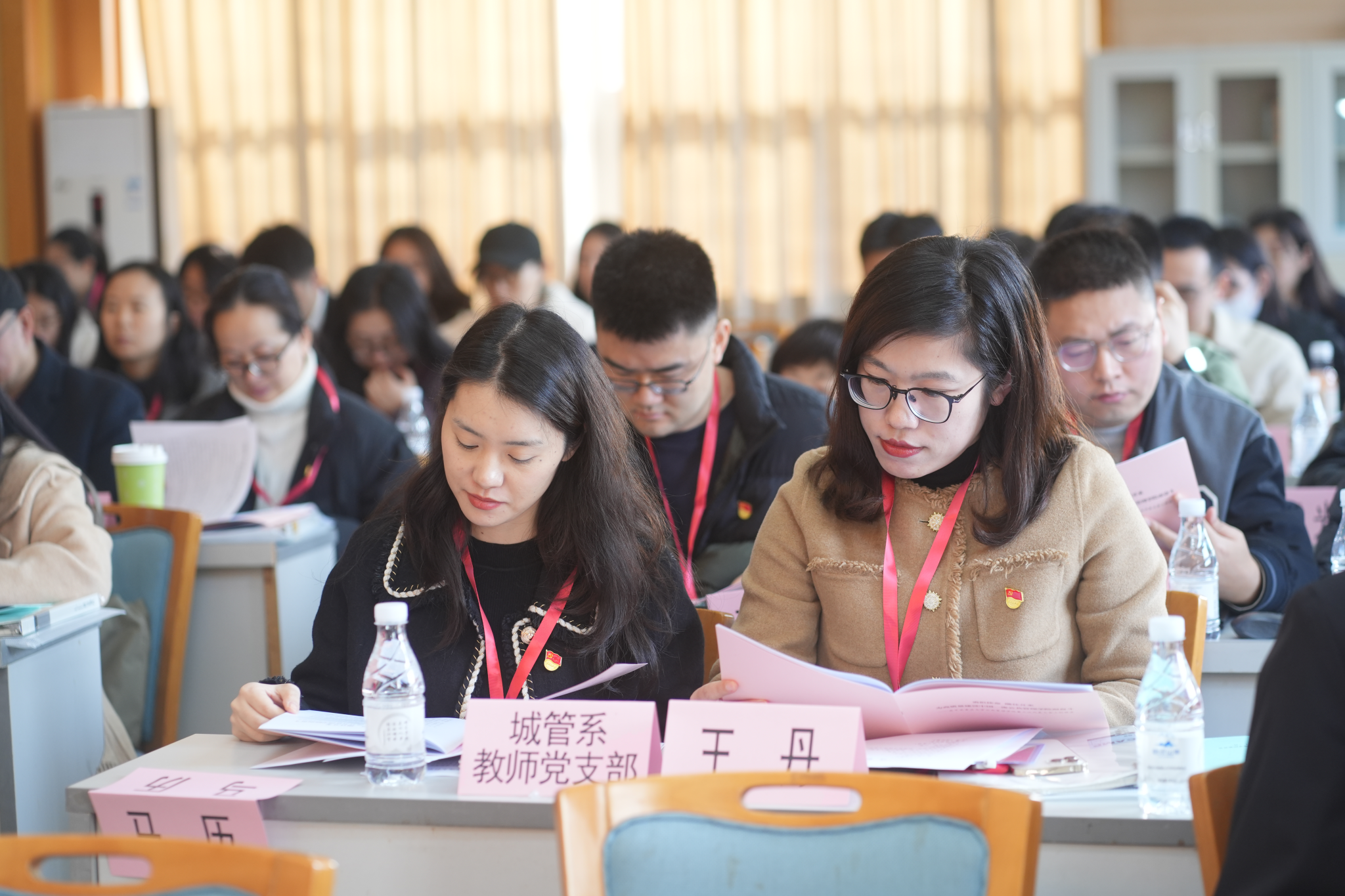 全体教师党员、学生党代表、部分民主党派代表参加了会议。