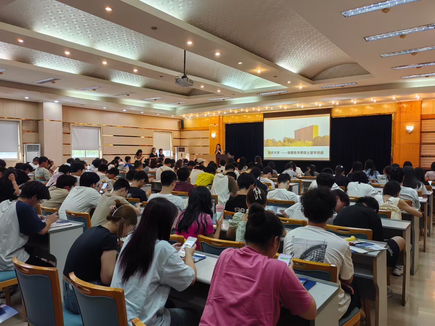 新加坡、德国、法国、日本和欧洲等出国深造项目的负责老师分别介绍了相关国家的留学政策、费用、院校优势与专业选择,详细讲解了申请流程和语言准备等事项,为有意向出国深造的同学提供了实用参考。