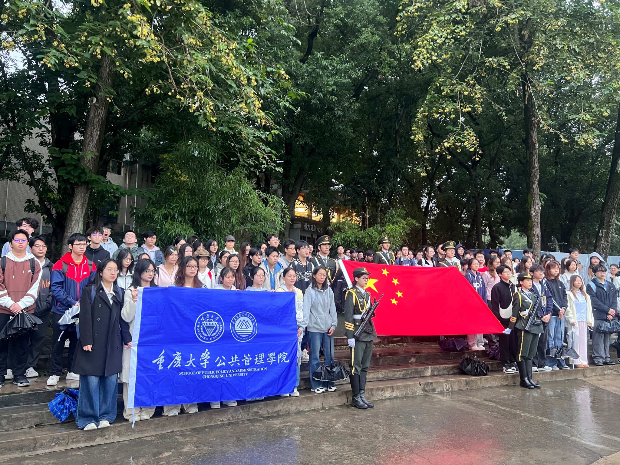 本科生二支部、五支部牵头,带领2024级五个团支部全体学生,在A区思群广场庄严开展“升国旗忆峥嵘,守初心勇担当”升旗仪式暨党建带团建主题活动。活动由本科生二支部书记、2024级辅导员徐柳老师统筹组织,全体2024级本科生准时集结,以饱满的精神状态参与此次活动。
