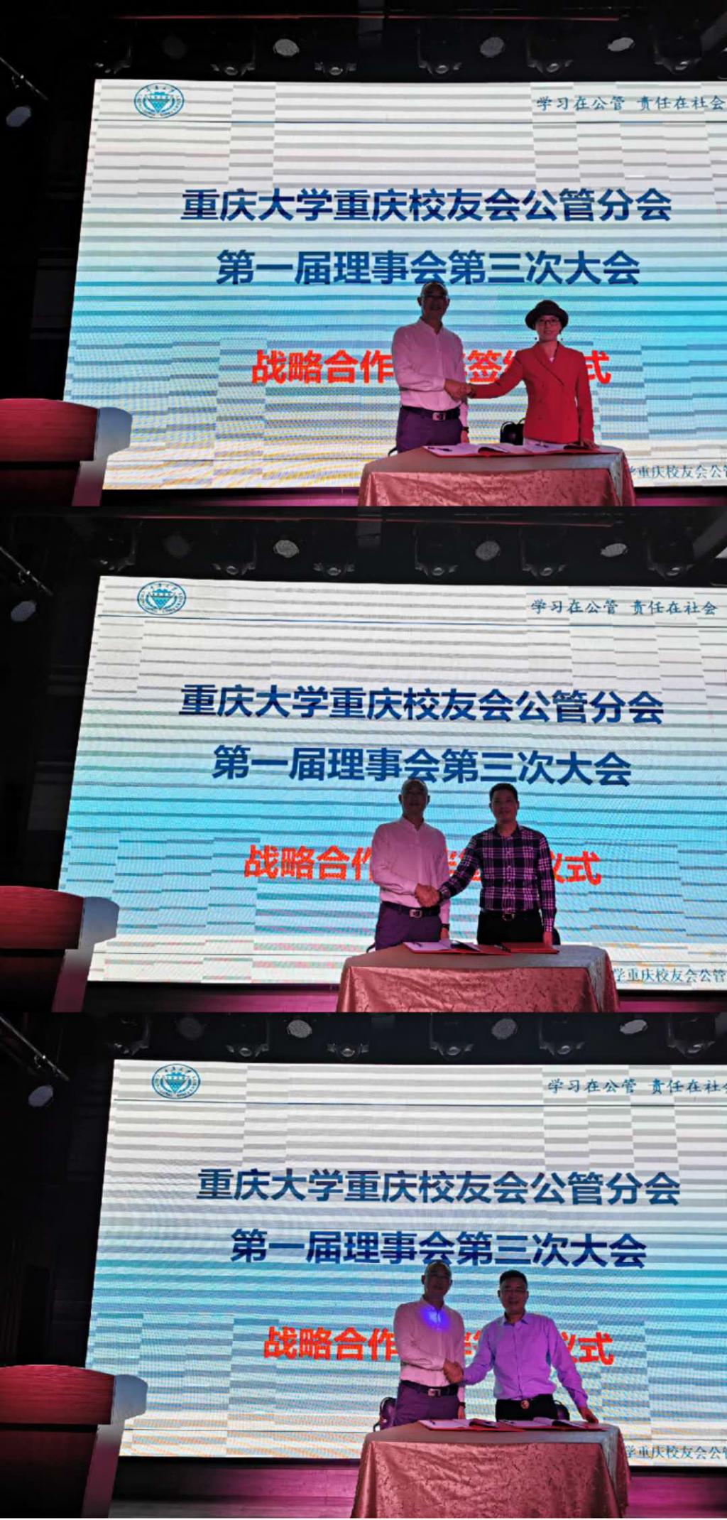 监事长苏德怀代表公管分会分别与三家理事单位重庆臻礼商贸有限公司、重庆壹一商务信息咨询有限公司、重庆合信原力实业(集团)有限公司签署了战略合作协议,开展深度合作。