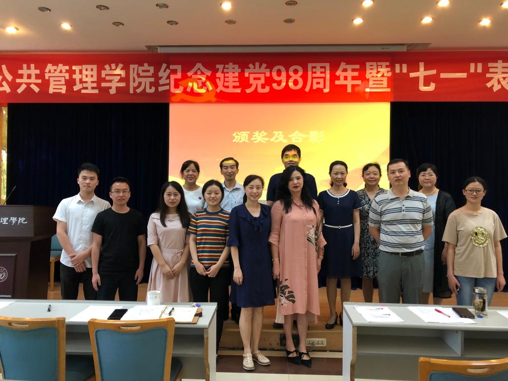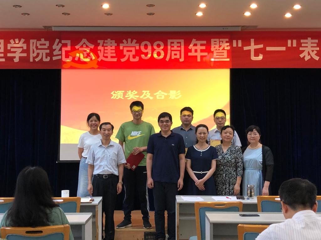 党委委员、领导班子成员为获院级表彰的集体和个人颁奖。获校级表彰的先进党支部代表及先进个人上台合影。