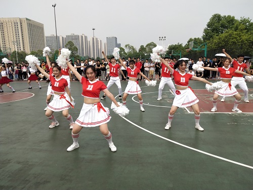 全体同学们一起,共同为啦啦操队员们加油助威。