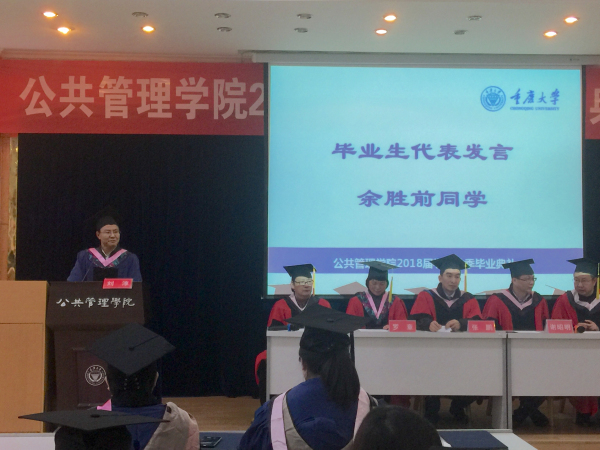 近年来获批重庆市首个公共管理一级学科博士授权点等一系列发展与进步,对同学们的共同努力表达了感激;他以“畅想”抒怀,嘱托同学们学无止境,无论身处任何岗位和环境,都要心怀国家社会、肩负责任,铭记“重大精神”,记得自己是“重大人”。祝福同学们工作顺利、前程似锦。