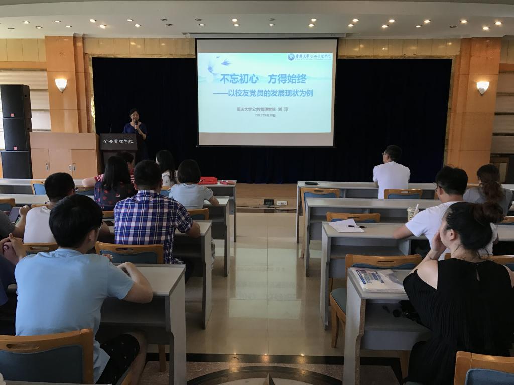 然后,刘淳为全体同志上了毕业前最后一堂党课,题目为“不忘初心、方得始终——以校友党员的发展现状为例”。她借走访慰问校友的契机,梳理了部分校友党员的学习经历和工作情况,并深情回忆了他们在校读书期间的点点滴滴,和大家分享了他们的成长故事与心得。她介绍到,肉视频