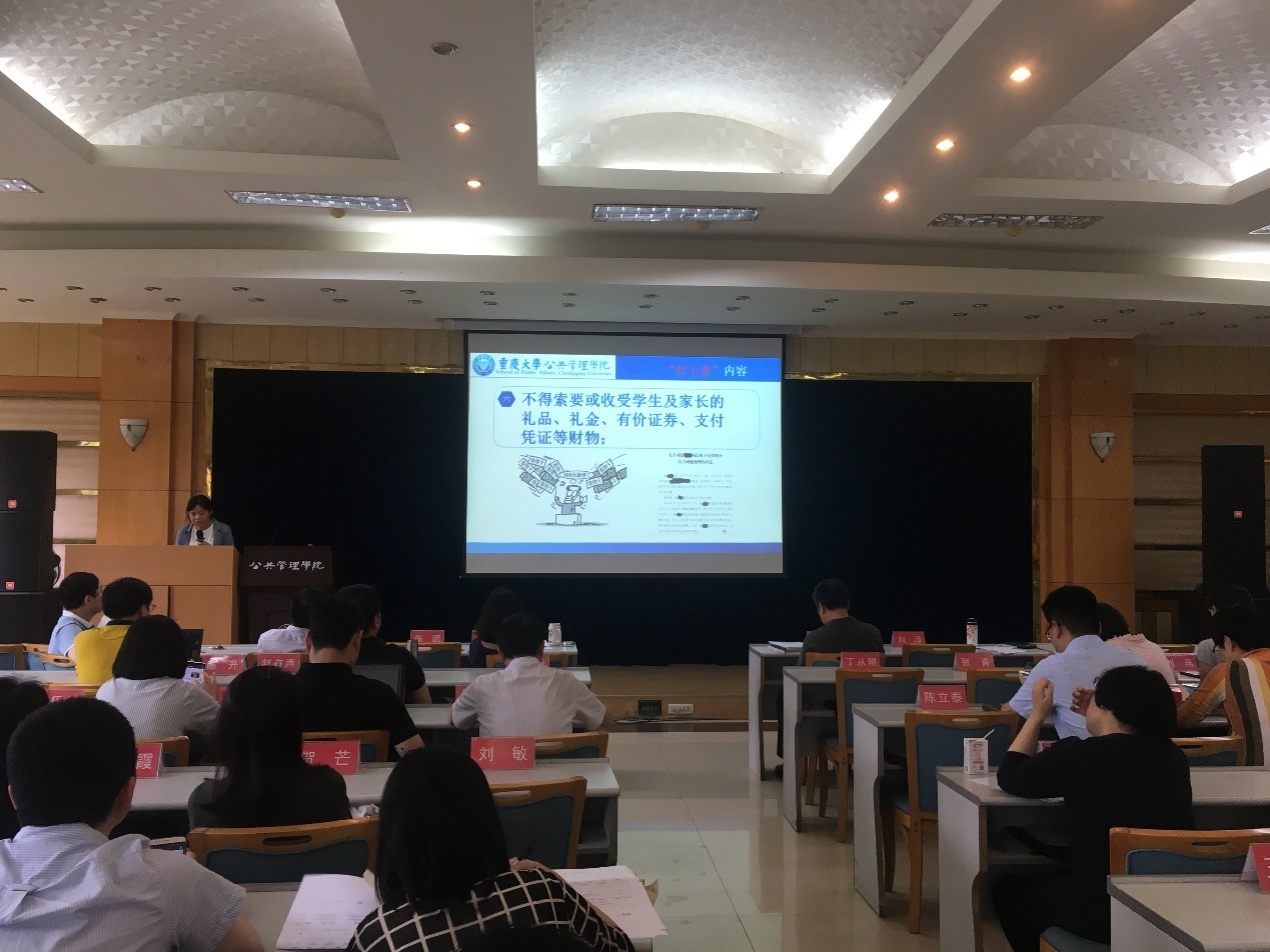 系主任陈永进老师说:高校教师的思想政治素质和道德情操直接影响着大学生三观“世界观、人生观、价值观”的养成,决定着人才培养的质量,关系着国家和民族的未来。因此,师德师风教育势在必行。