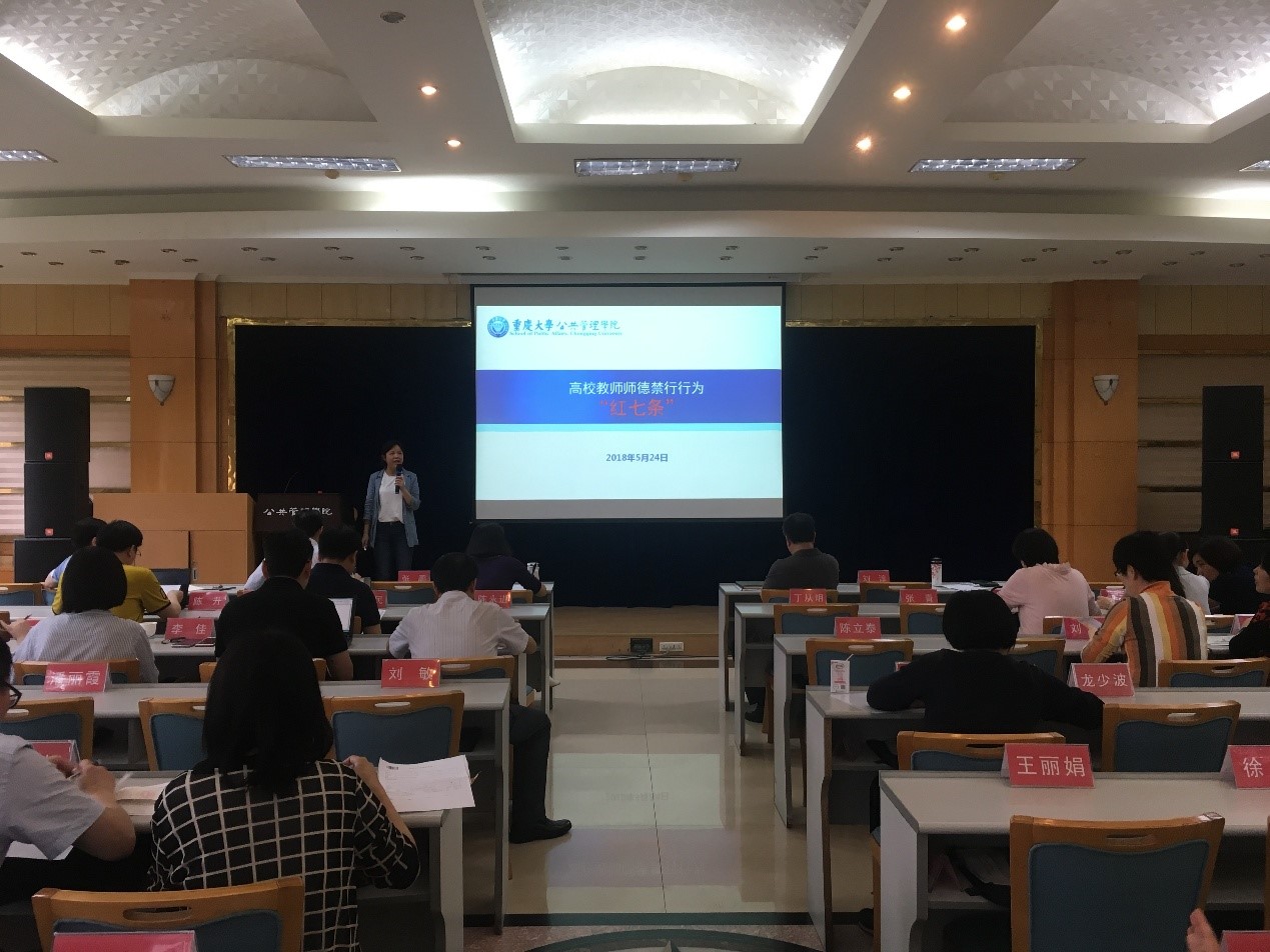 党委于5月24日下午3点组织了《关于印发<关于建立健全师德建设长效机制的实施意见(修订)>的通知》(重大委〔2018〕5号)专题学习会。全院教师在肉视频