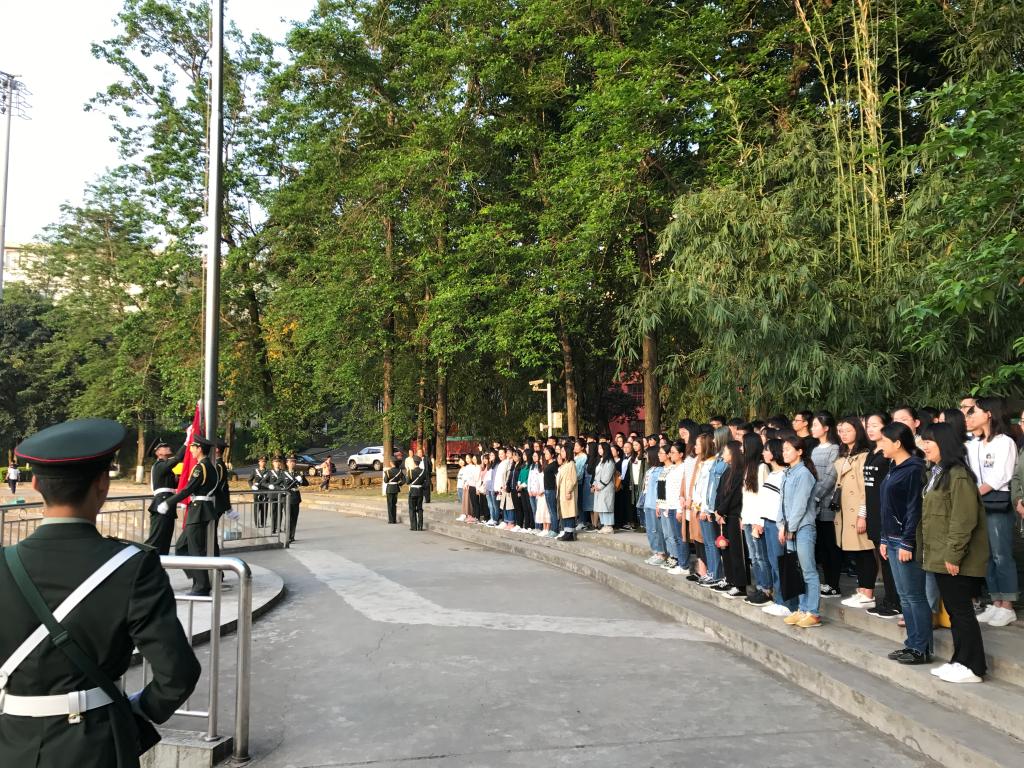 本科2014、2015级学生党员和入党积极分子共120余人,在A区思群广场国旗台下列队集合,参加肉视频