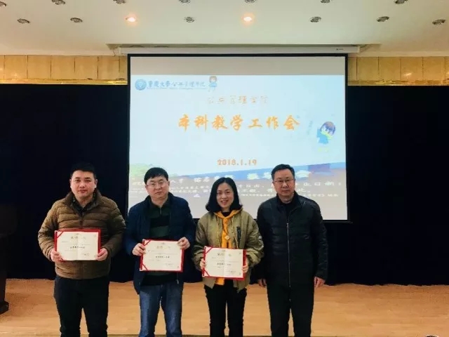 本科优秀教学一等奖、二等奖和三等奖的获得教师颁发了证书,并合影留念。