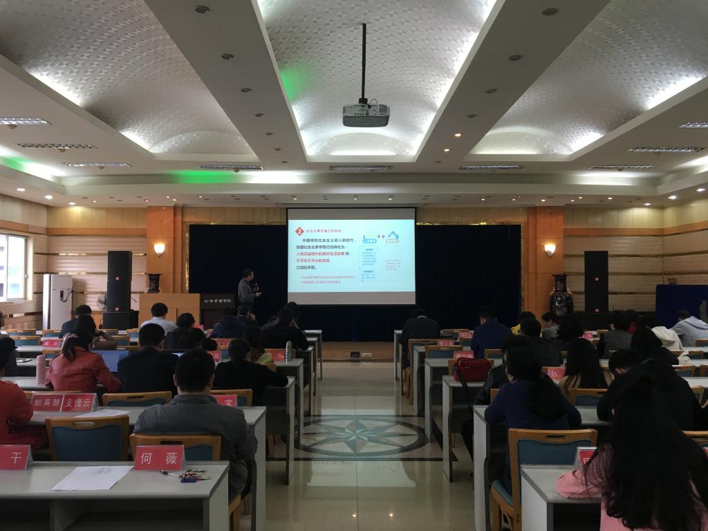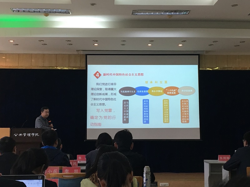 张邦辉主要针对19个新提法进行了解读。他指出党的十九大报告提出了中国发展新的历史方位——中国特色社会主义进入了新时代。这是一个重大判断。社会主要矛盾历史性新变化:已转化为“人民日益增长的美好生活需要和不平衡不充分的发展之间的矛盾”。报告提出了新的奋斗目标:分为三个目标、两个阶段、两步走,从全面建成小康到社会主义现代化强国。新的理论创新成果:新时代中国特色社会主义思想。以及新时代中国特色社会主义基本方略、“两个一百年”奋斗目标的历史交汇期、新时代中国特色社会主义发展战略安排、建设现代化经济体系、探索建设自由贸易港等一系列新提法。