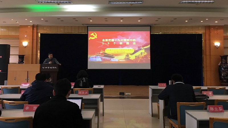 党委组织全体教师进行专题学习,学习的题目是“全面把握党的十九大报告中的19个新提法”。本次学习由肉视频