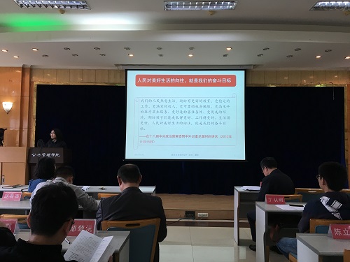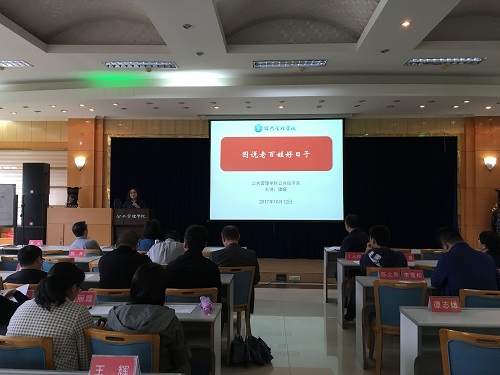 党委书记兼常务副院长张邦辉主持,由经济系谭娅老师主讲。