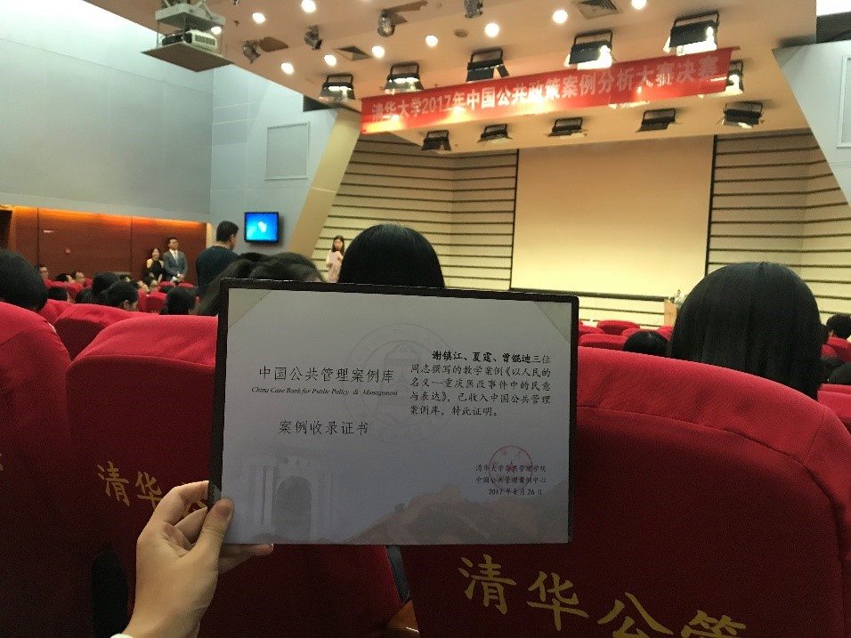 2014、2015级行政管理专业本科生谢镇江、夏霆、曾锟迪三位同学所组成的“笃行”调研小队,与23支海内外高校队伍同台竞技,各展风采。最终该队所撰写的案例《以人民的名义——重庆医改事件中的民意与表达》被确定纳入中国公共管理案例库。