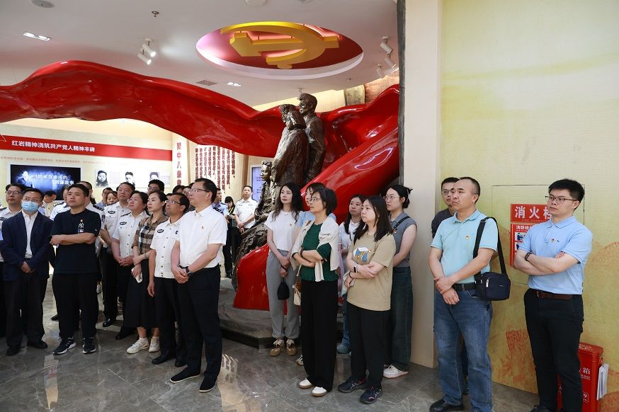 在讲解员的带领下,全体人员在序厅观看视频《习近平总书记的告诫》,重温了入党誓词。