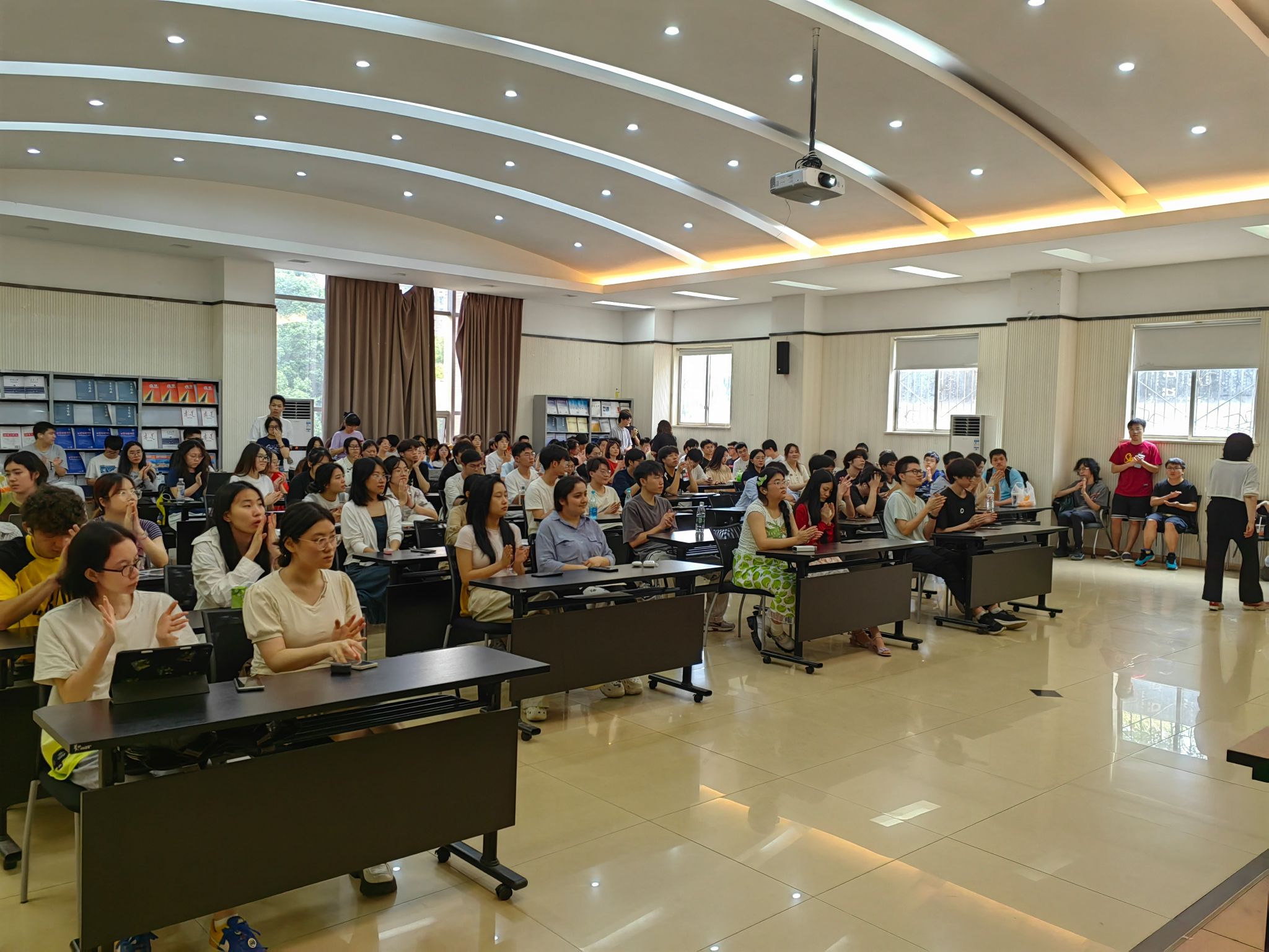 2025年6月19日13:00,为帮助22级的同学明晰发展路径,本科生一支部发挥样板支部示范引领作用,联合本科生第四党支部举办“21级学长学姐经验交流分享会”,聚焦考公、考研、留学、就业四大方向,邀请8位优秀21级学长学姐深度分享成长经验,全年级159名同学积极到现场参与。