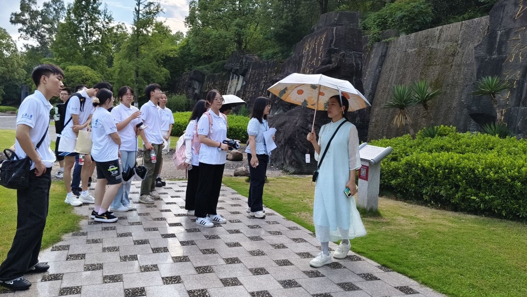“‘飞流直下三千尺,疑是银河落九天’的豪迈,不仅是诗歌的力量,更是中华优秀传统文化的精神标识,这份文化自信正是‘大思政’教育最生动的教材。”在李白故居太白堂前,讲解老师结合李白诗词中的家国情怀与人生追求,为同学们上了一堂别开生面的户外思政课。