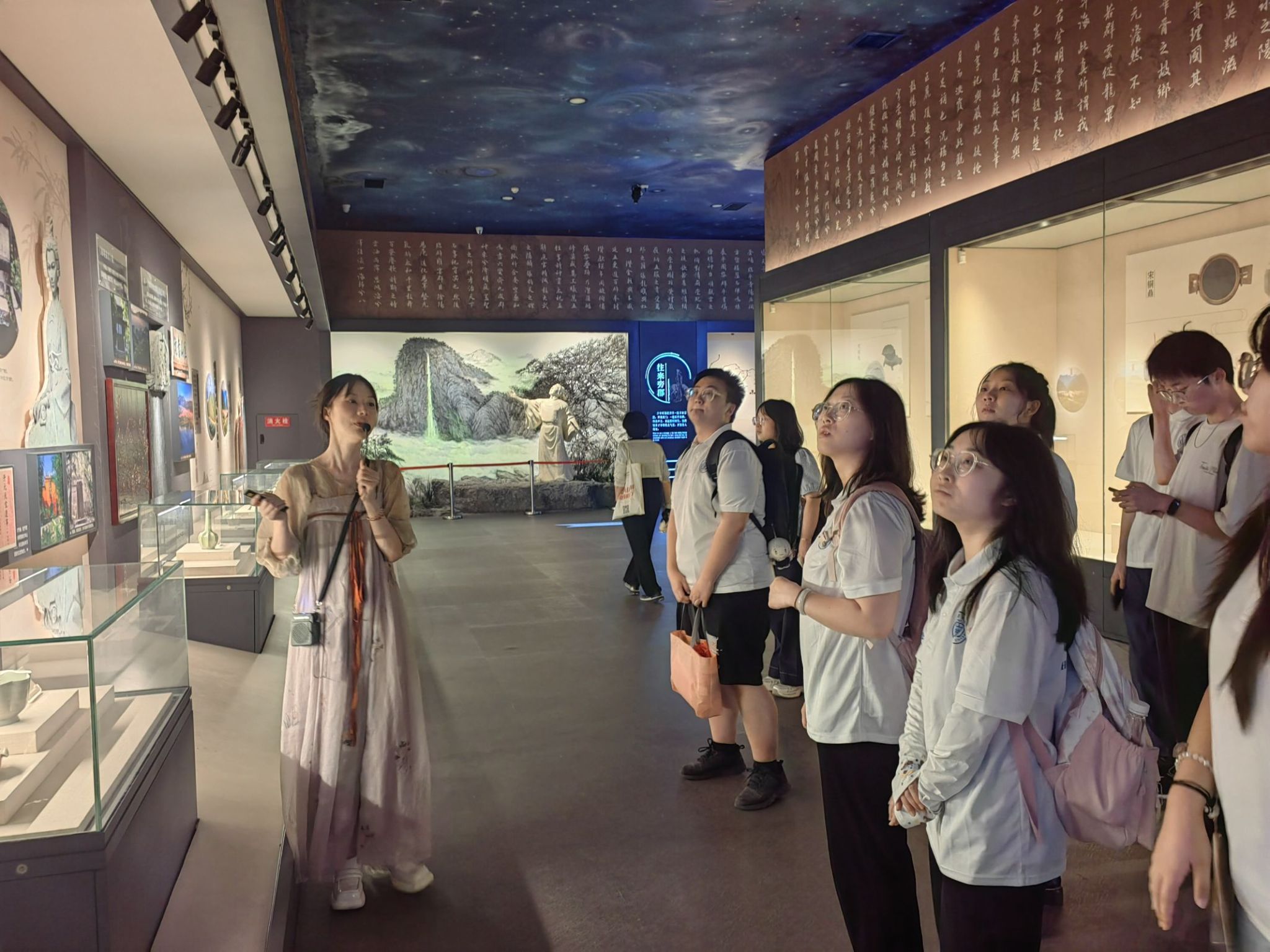 步入博物馆,团队成员首先聚焦的并非单一文化符号,而是思考如何让历史文化资源成为思政教育的“活教材”。馆内通过多重媒介呈现的文化脉络,让大家直观感受到:文化传承从来不是简单的陈列,而是要像思政课堂强调的“理论联系实际”那样,找到与当代社会的结合点。正如团队成员在调研笔记中所写:“这里的每一件展品,都是理解‘文化自信如何转化为发展动能’的生动案例,这比课本上的概念更具说服力。”