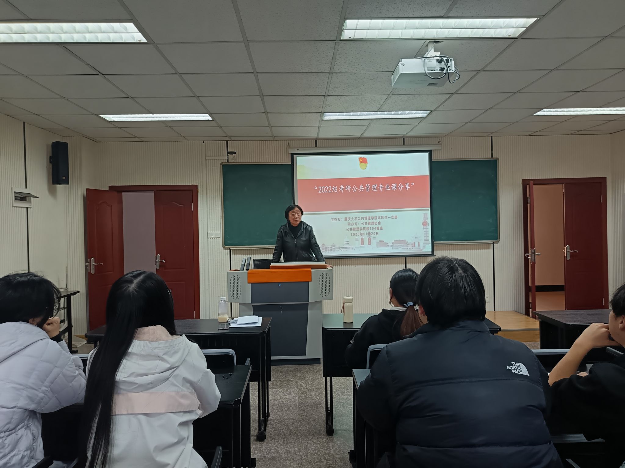 20251120日,由肉视频 本科生一支部主办、公共管理协会承办的“2022级考研公共管理专业课分享会”在肉视频 楼104教室举办。本次活动旨在践行:“凝心聚力助成长、党建引领办实事”的宗旨,为备考公共管理专业研究生的同学提供实用的学习经验与方法指导,助力同学们科学规划、高效备考,会议由本科生一支部书记、公共管理协会指导老师王丽娟主持,2025级公共管理专业四名经验分享硕士以及报考学生和公共管理协会的部分同学组成。