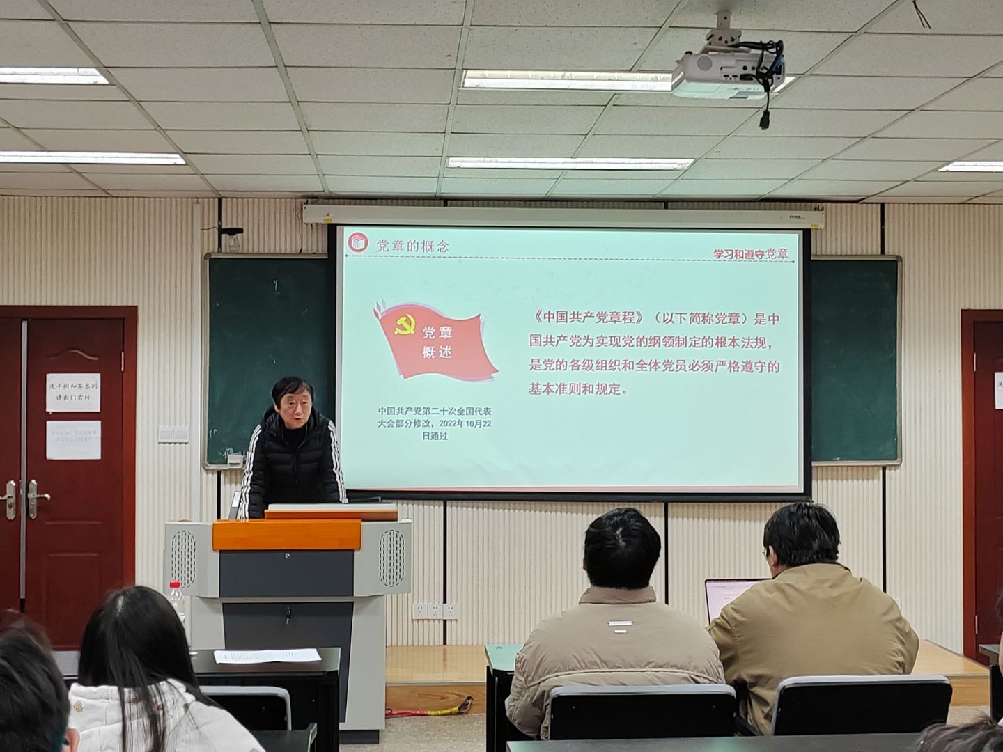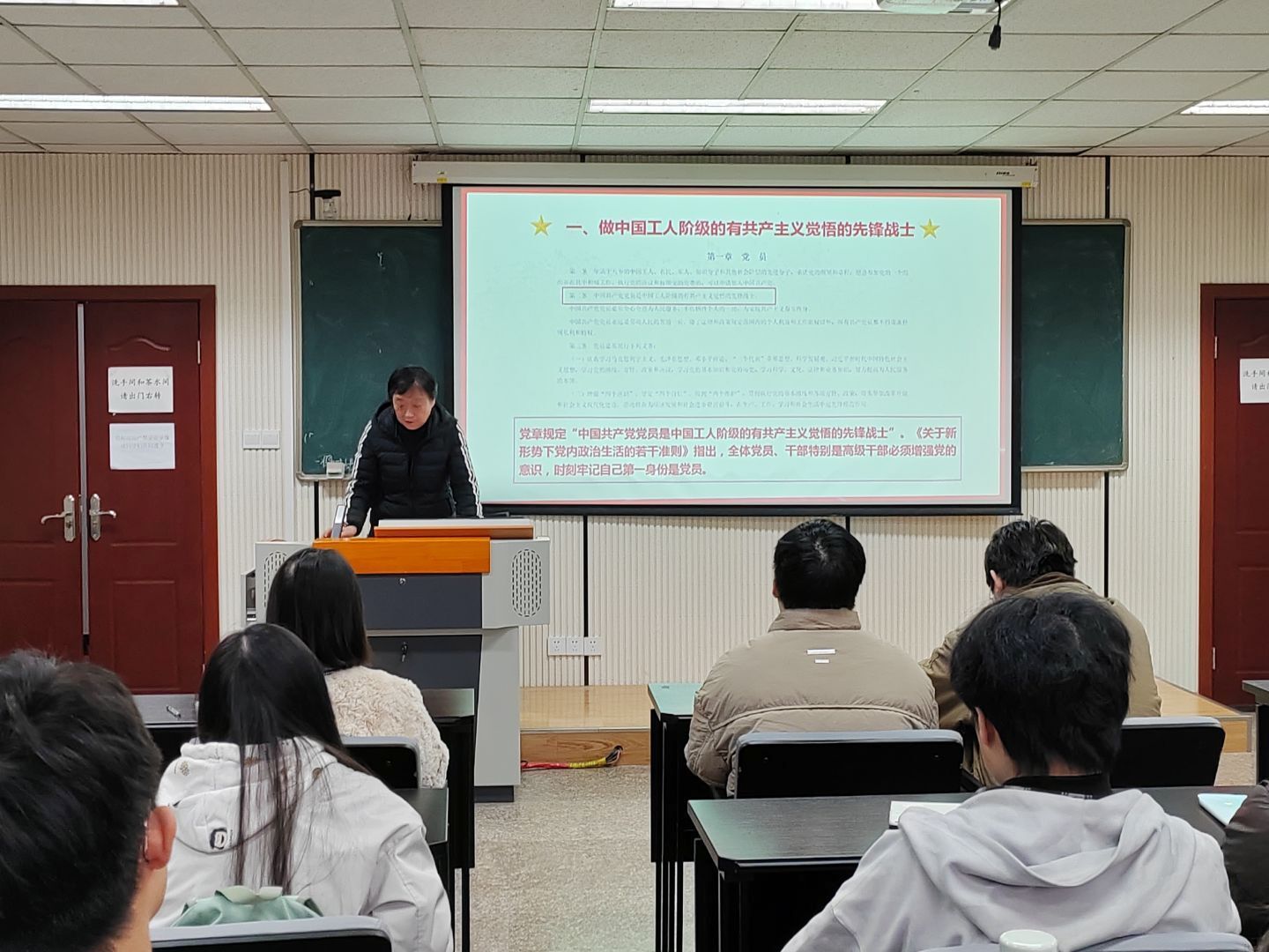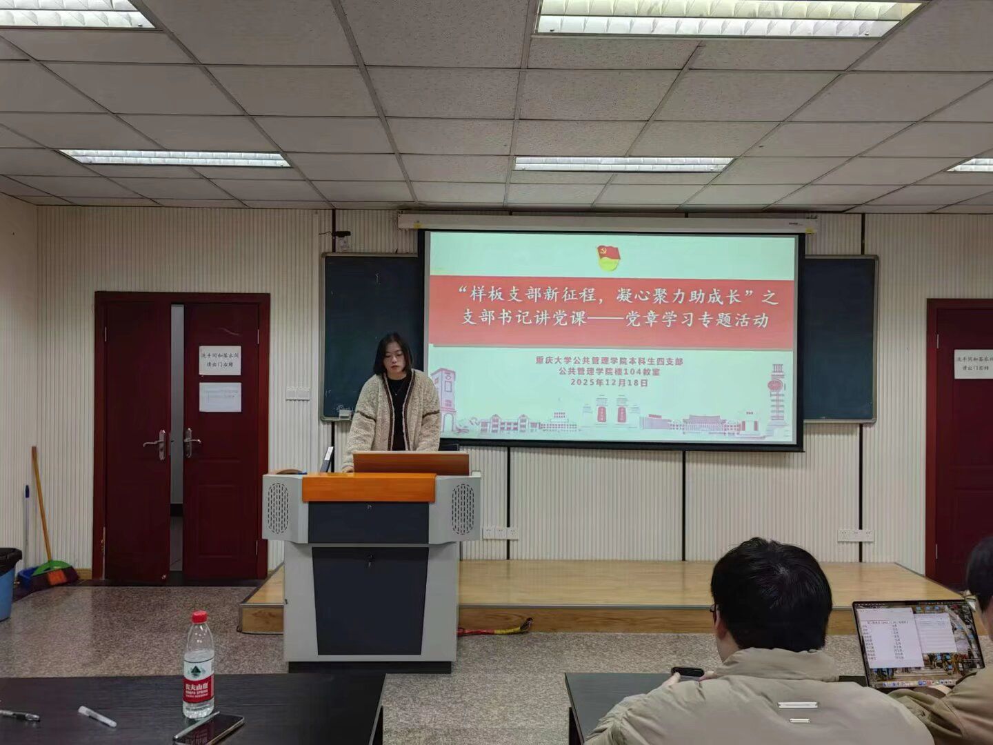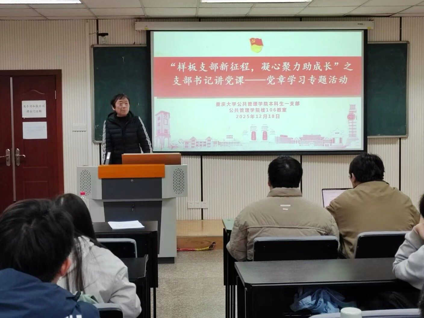 楼106教室成功举行“样板支部新征程,凝心聚力助成长”系列活动之支部书记讲党课之党章学习活动。此次活动紧扣《高校党建重点工作任务(2025—2027年)》部署要求,响应“巩固深化党纪学习教育成果”的中央号召,由本科生一支部书记王丽娟与四支部书记钱诗佳主讲,本科生一、四支部全体党员积极参与。