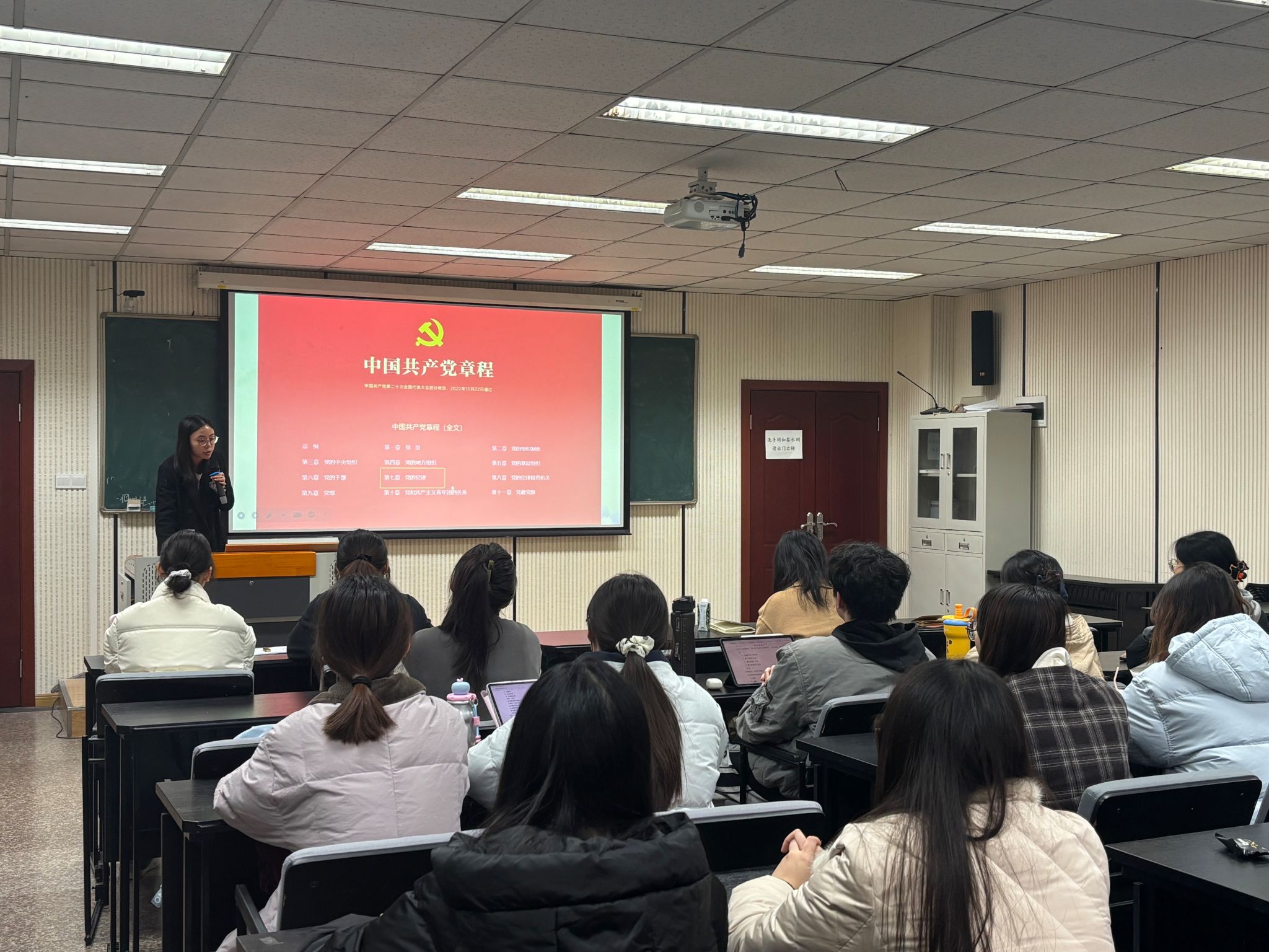 楼106教室联合开展了“学党章,强党性,践初心”主题党日活动。活动由二支部书记徐柳、五支部书记曹李思帆共同组织,涵盖党章学习与知识竞答两个环节,旨在引导支部党员与入党积极分子深化党章理解、增强党性修养、践行初心使命,切实将党章要求融入日常学习与服务实践中。