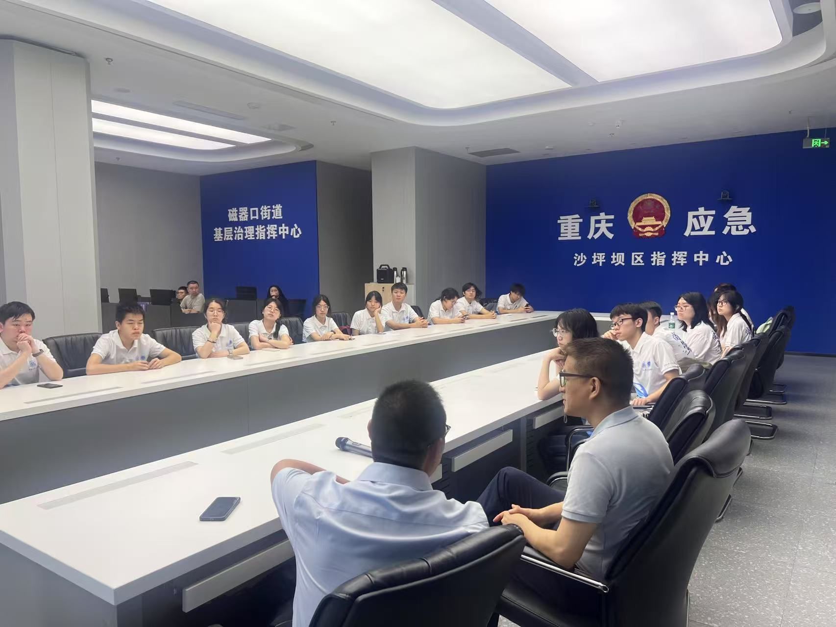 “数智渝行,云端护‘心’”实践团师生一行21人前往重庆市沙坪坝区磁器口街道基层治理指挥中心(以下简称“指挥中心”)开展专题学习调研活动。此次活动旨在深入了解“数智重庆”建设在基层治理末端的落地应用与实战成效。