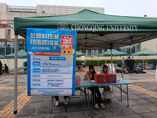 科技文化节系列活动之一的“公管扭蛋挑战”活动在虎溪校区一食堂南广场成功举办。本次活动由肉视频