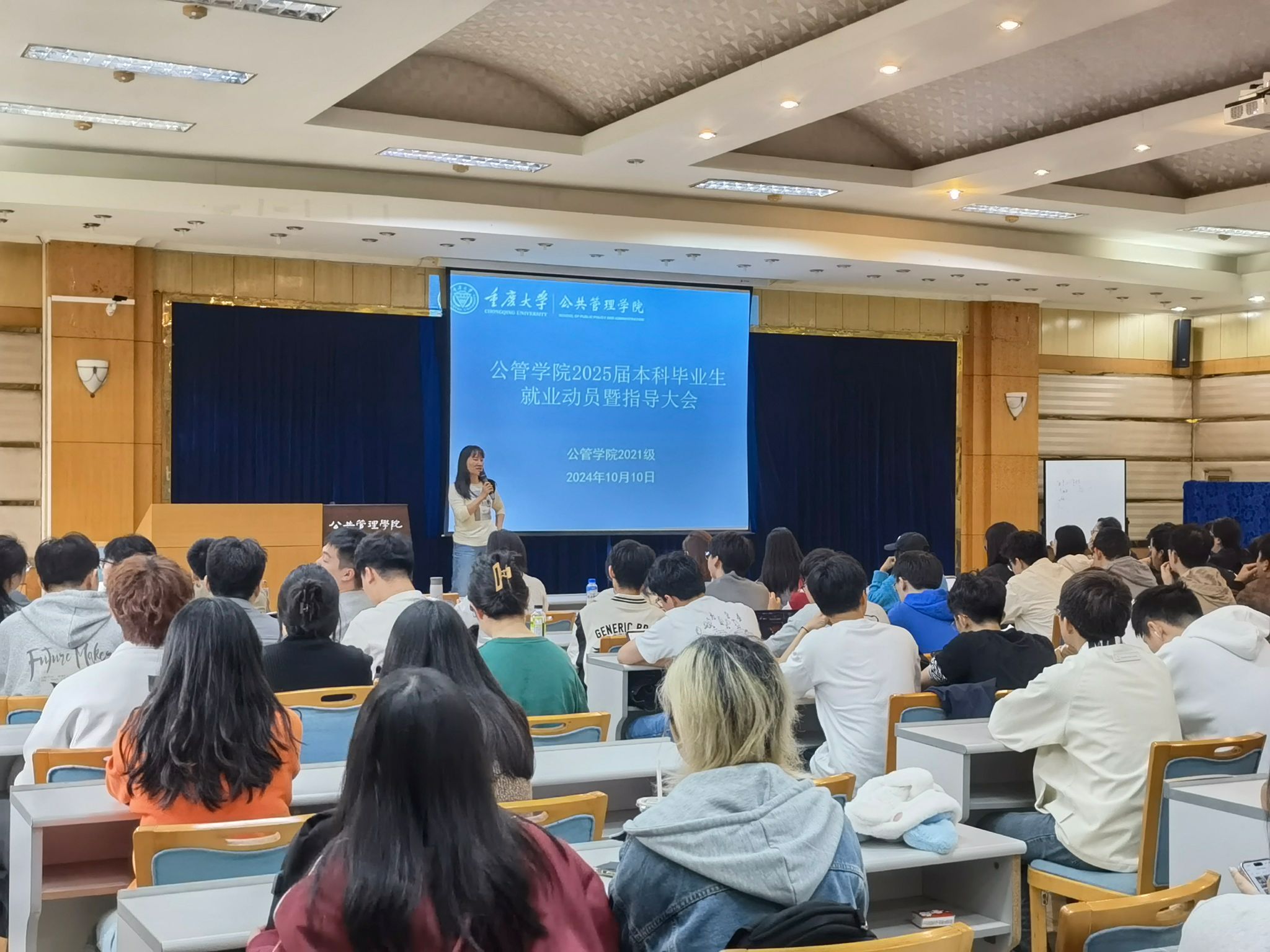 于202会议厅召开了2025届本科毕业生就业动员暨指导大会,会议由本科毕业生辅导员徐柳主持,主要围绕就业动员、就业相关问题指导、毕业生就业服务等三个部分展开,全体2025届本科毕业生到场参会。