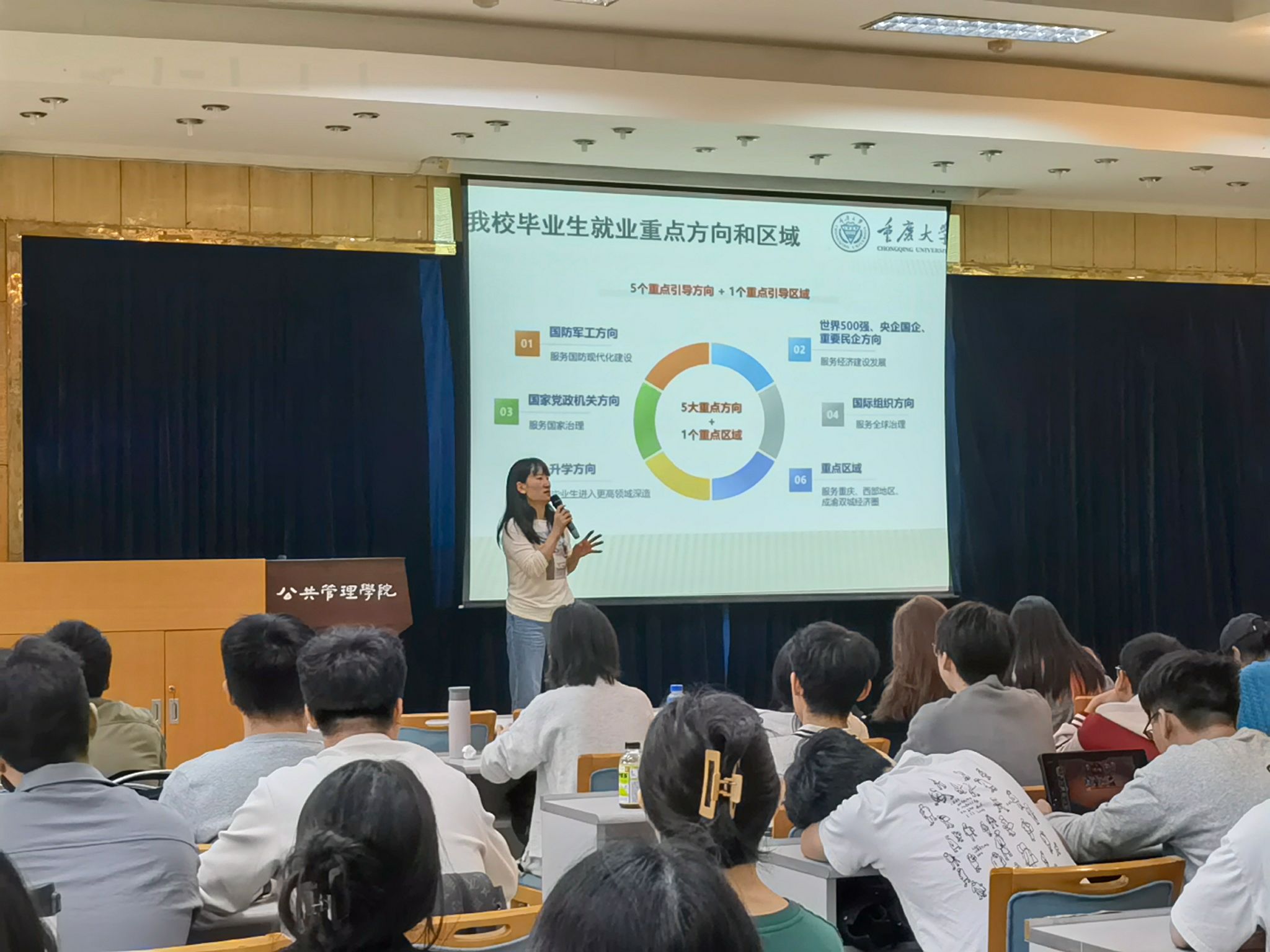 毕业生主要有国防军工、重要央企国企、国家党政机关、升学、国际组织五个重点就业方向以及服务重庆、西部地区、成渝双城经济圈一个重点区域,还未落实就业去向的同学要积极关注多渠道的就业招聘信息,面对不同行业和岗位打造有针对性的简历,总结每一次应聘和面试的经验,提升自己的竞争力和应试力。
