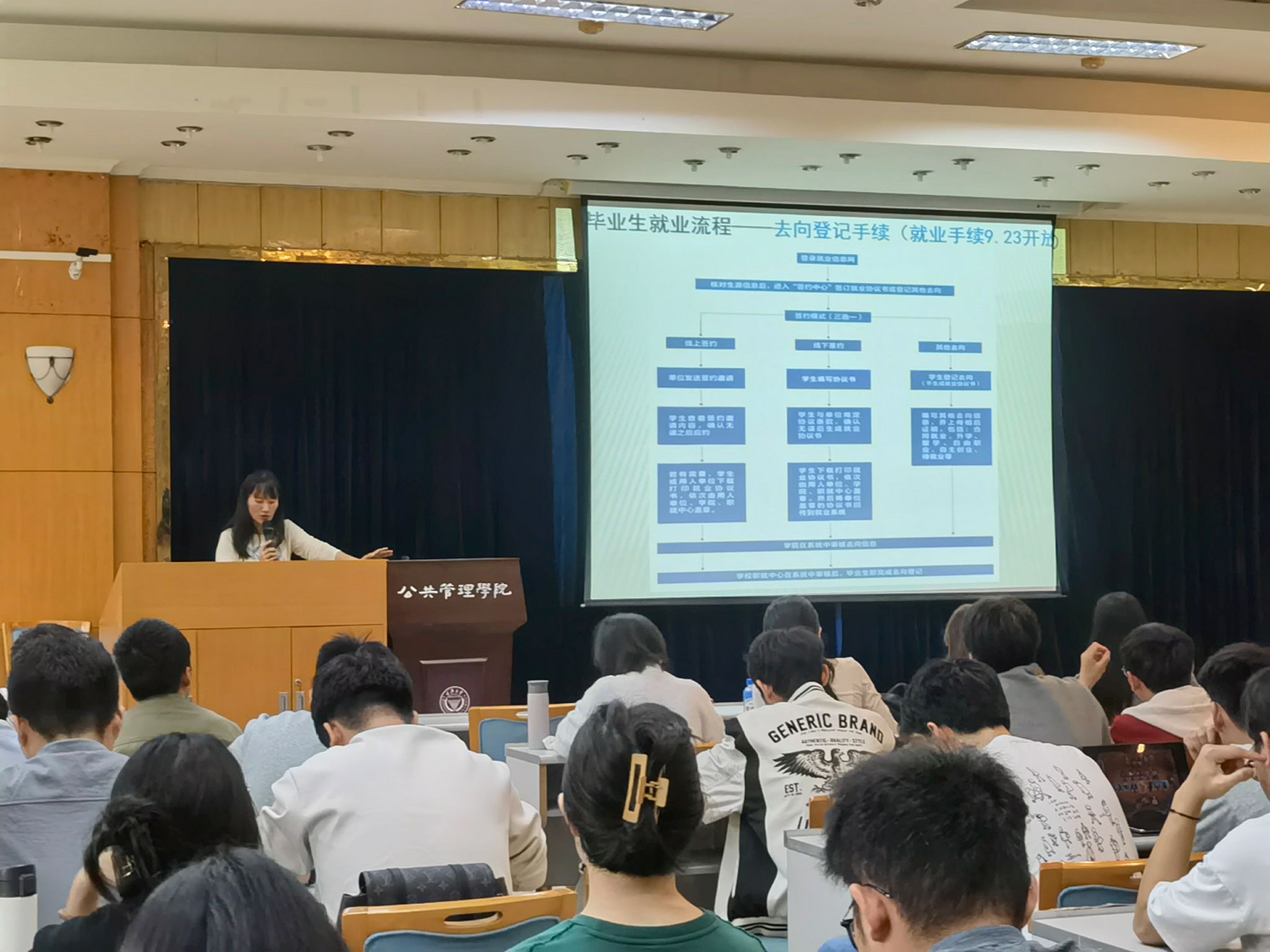 的就业服务中,徐柳老师详细讲解了毕业生就业流程和就业系统的使用,特别强调了签订和解除三方协议的注意事项,提醒同学们在签约前务必深思熟虑,诚信签约;签约时重点关注解约条件、违约责任等关键条款,保护自己的合法权益。她叮嘱同学们要合理安排时间,积极认真准备,充分利用校园秋招机会,秉持“先就业,再择业;先生存,再发展”的理念,不自我设限,有序推进就业流程,抓住每一次机会尽早实现高质量就业。