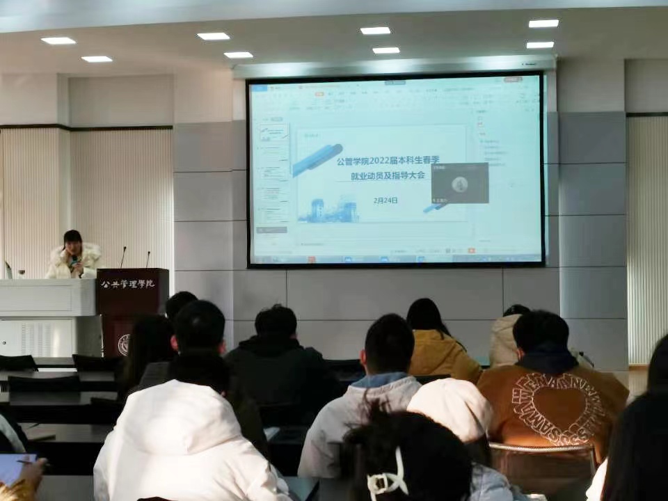 楼102教室举办2022届本科毕业生春季就业动员及指导大会,会议由2022届本科生辅导员徐柳老师主持,全体未就业学生到会参加。对于因实习、疫情等原因尚未返校、不能到场参加的同学,则以线上会议形式参会。
