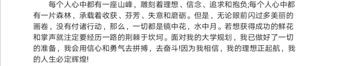“古之立大事者,不惟有超世之才,亦必有坚韧不拔之志。”制定计划容易,执行计划却并不容易,持之以恒地贯彻执行计划更是难上加难。对此,同学们并没有好高骛远,而是坚定地表明了自己的决心,并做好准备,一步一步地去迎接新的挑战。在遇到突发因素,或是背离计划的情况时,同学们也会迎难而上,绝不怯懦,用坚韧不拔的意志去攀登最高的山峰,融化最寒的坚冰。一如汪国真先生所言:“我不去想是否能成功,既然选择了远方,便只顾风雨兼程。”公管的学子们,从五湖四海相聚重大,为了求学,为了梦想,不惧风霜严寒,不惧思乡情切。