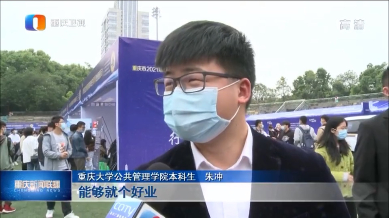 2017级本科毕业生朱冲在双选会现场接受了《重庆新闻联播》的记者采访,他谈到:“考不上研究生就找工作,能够就个好业,这次双选会上有国企,也有许多民营企业,有职能岗,有技术岗,比较齐全。”他表示自己要更加努力,找到最适合自己的工作岗位。
