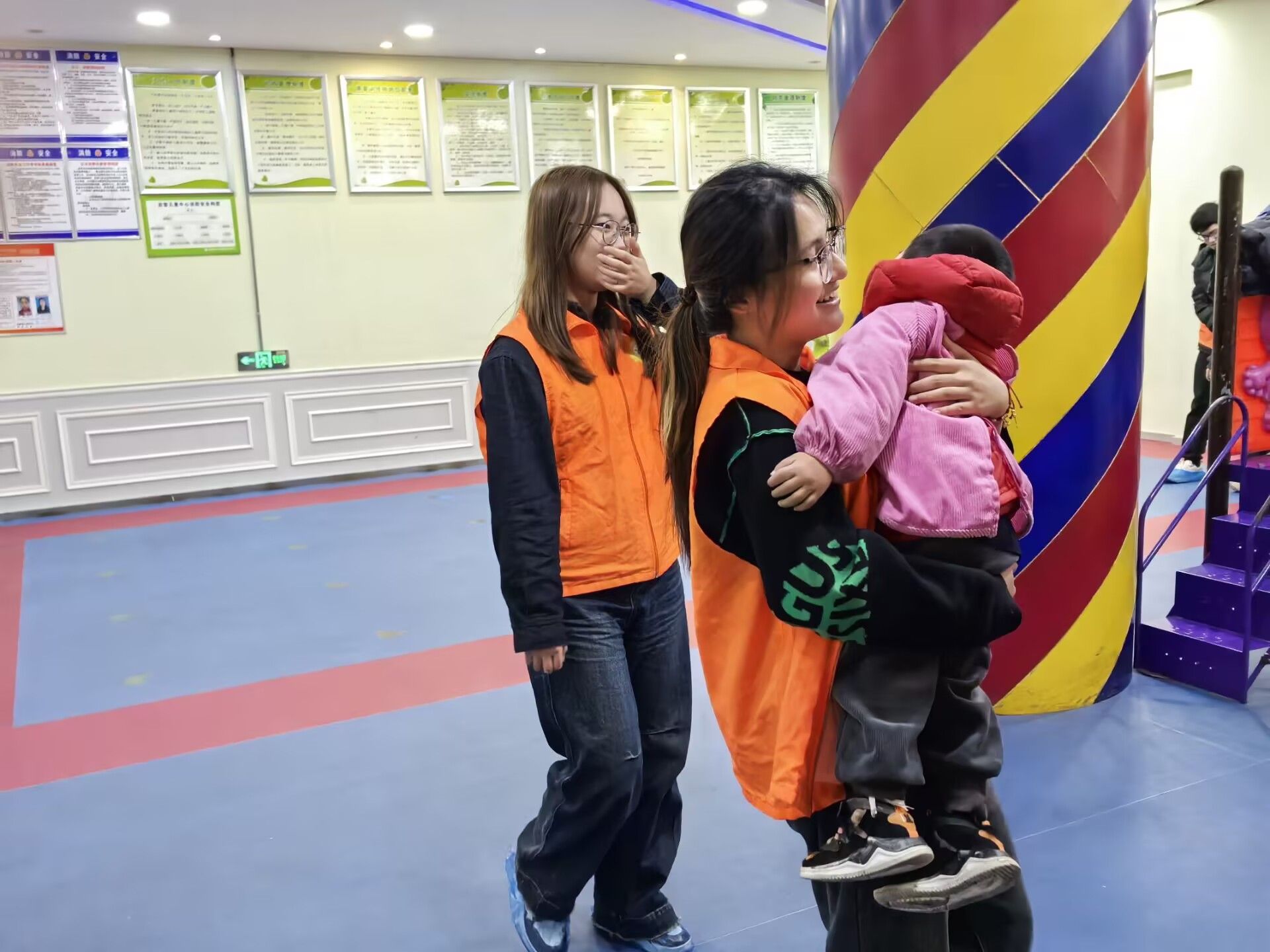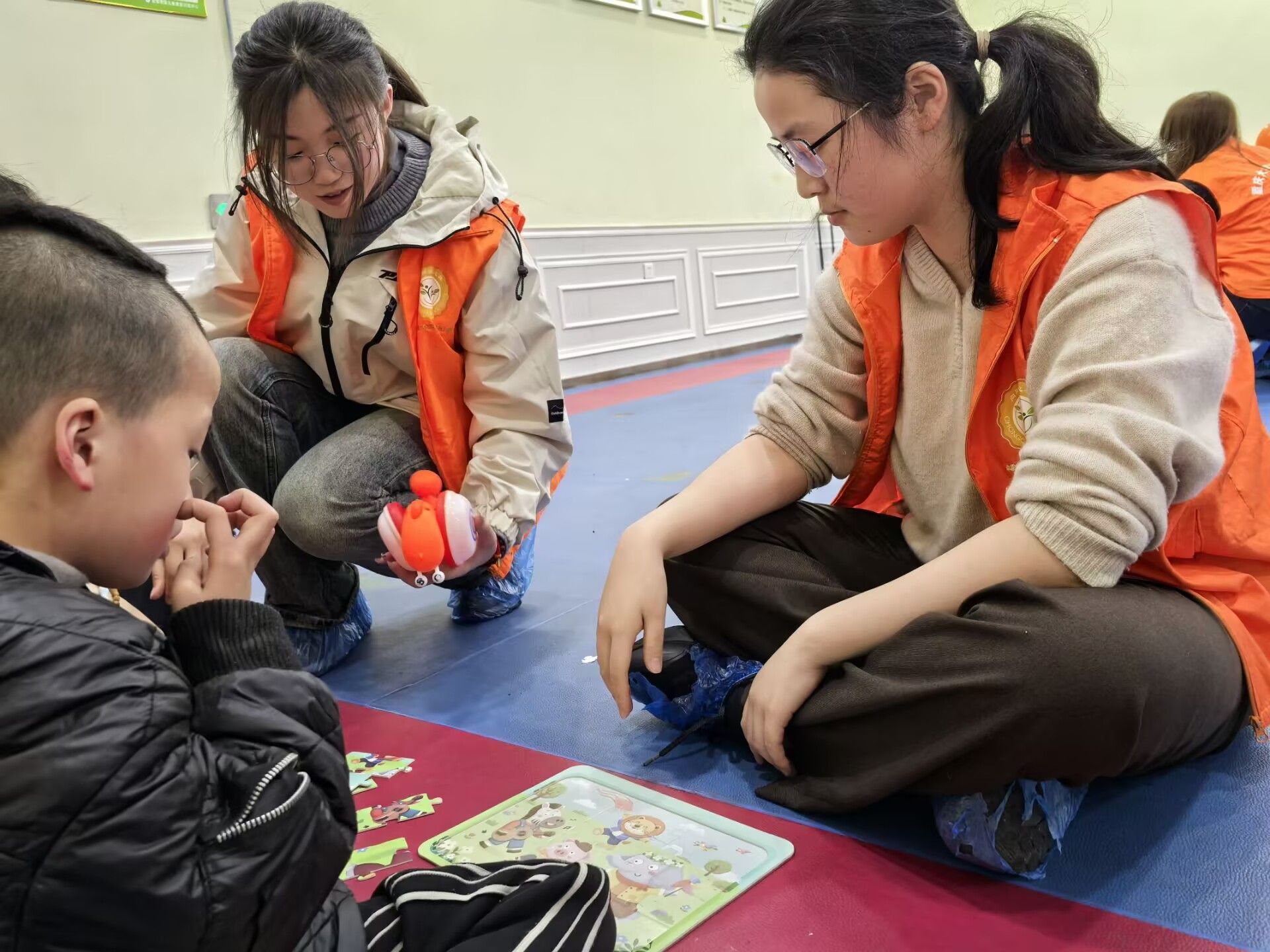 在本次活动中,我们继续采取了新颖的活动形式。虽然在刚开始的时候,局面有些混乱,但在康复中心的老师的协助下,我们也是维持好了秩序,让活动能有条不紊地进行。在第一个活动中,我们策划组的成员站在中间带着大家跳一些简单的舞蹈,极大带动了现场的氛围。在大厅里,在志愿者的陪伴下,小朋友们进行着各种简单的游戏,笑得很开心。在这之后,我们又让志愿者带着小朋友去房间里画画,搭积木,提升他们的认知能力。最后在大家共同努力下,活动也是圆满落幕。