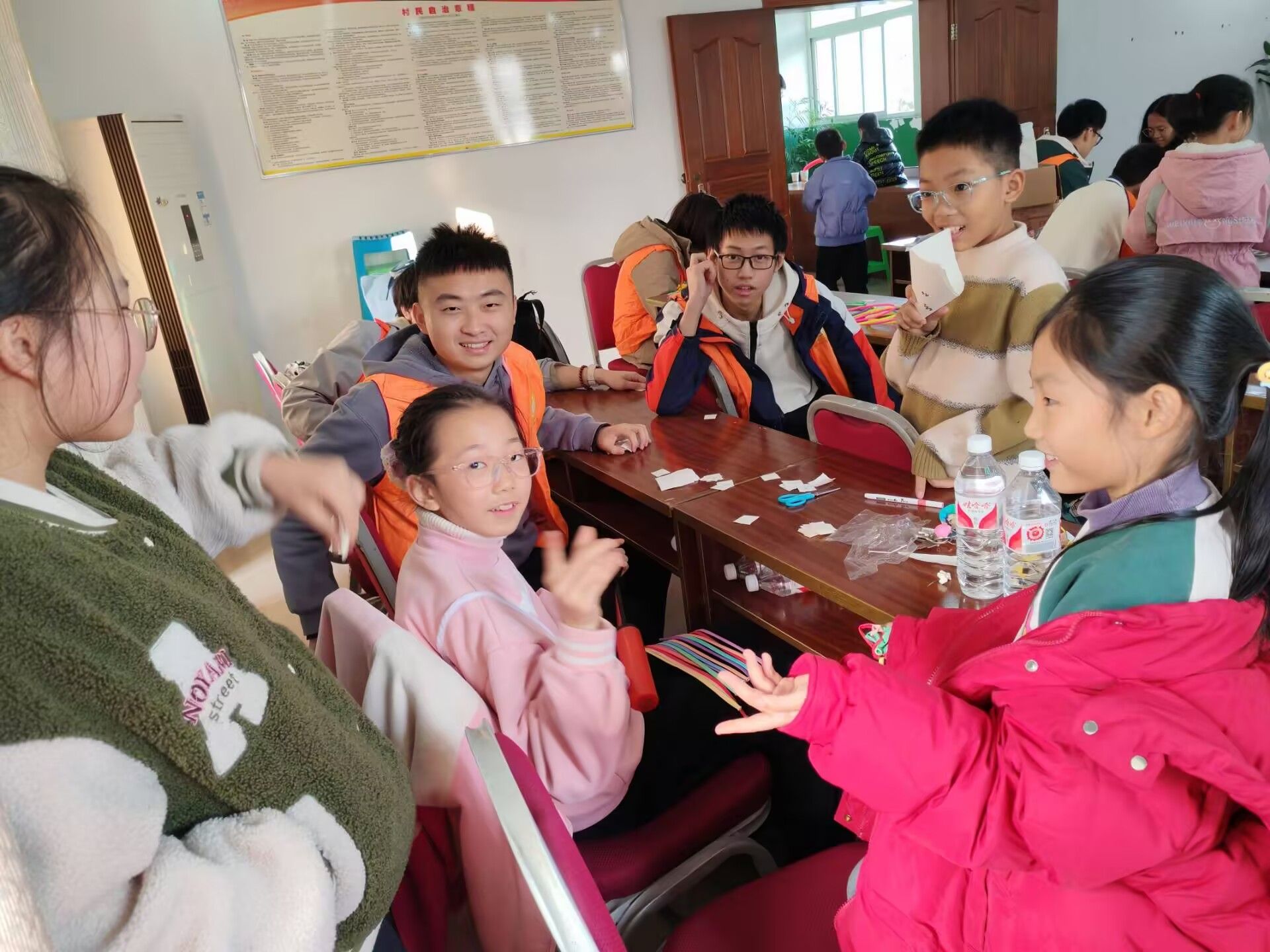 本次活动现场,志愿者们耐心十足,与小朋友们积极互动。活动中志愿者陪着小朋友们一起画画,五彩的画笔在纸上舞动,绘出一个个充满童趣的世界。五子棋对弈中,智慧的火花在棋盘上碰撞。手工制作环节更是乐趣无穷,孩子们充分发挥自己的想象力和创造力,将各种材料变成了一件件精美的手工作品。他们认真专注的神情和精巧灵动的动手能力令人赞叹。