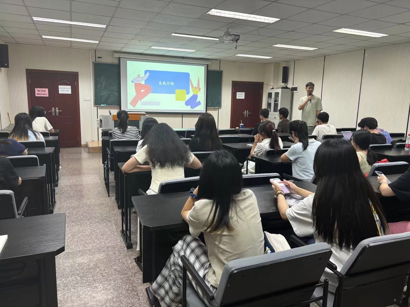 做为本学期第一次团日活动,也是在经历大类分流后经济学2班同学第一次全体的线下见面,在团日活动正式开始之前,同学们先进行了一个简短的自我介绍破冰环节。
