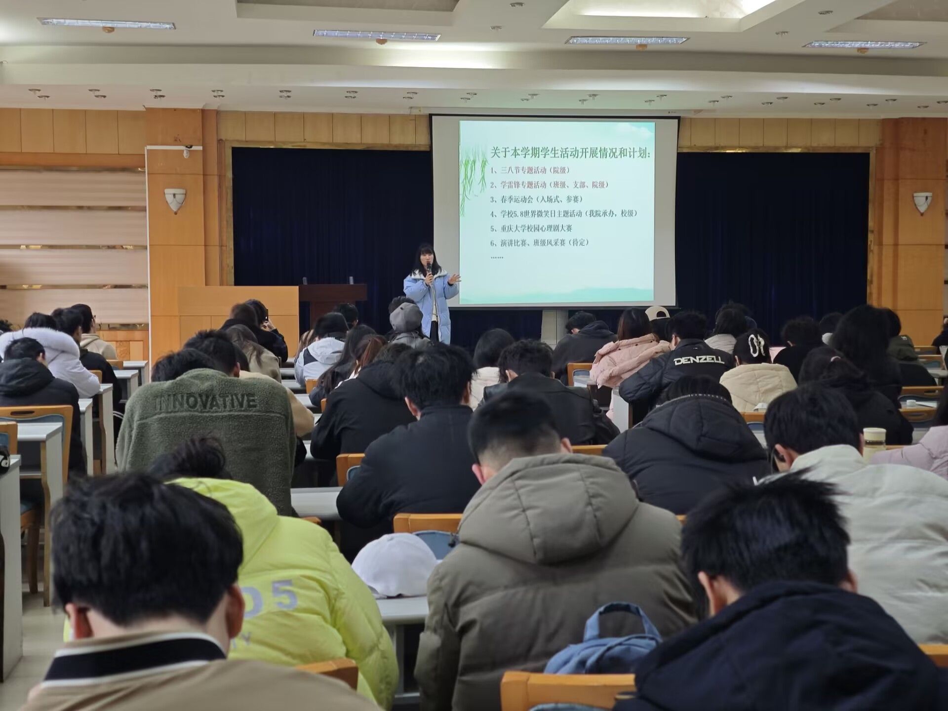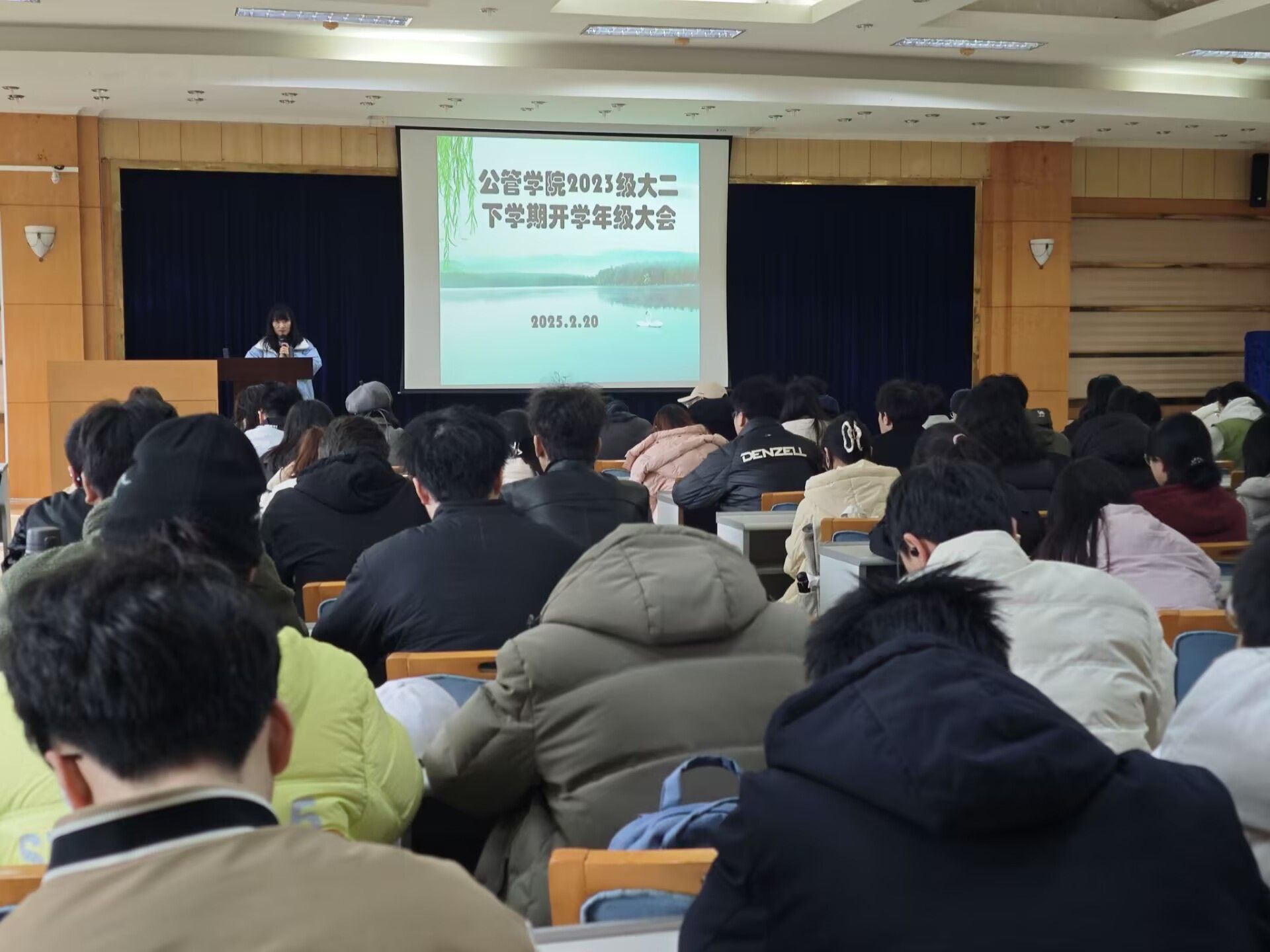 团委书记兼21级、23级辅导员徐柳老师主持,旨在帮助同学们明确学习目标和生涯规划,共同迎接新学期的挑战与机遇,2023级全体学生参会。