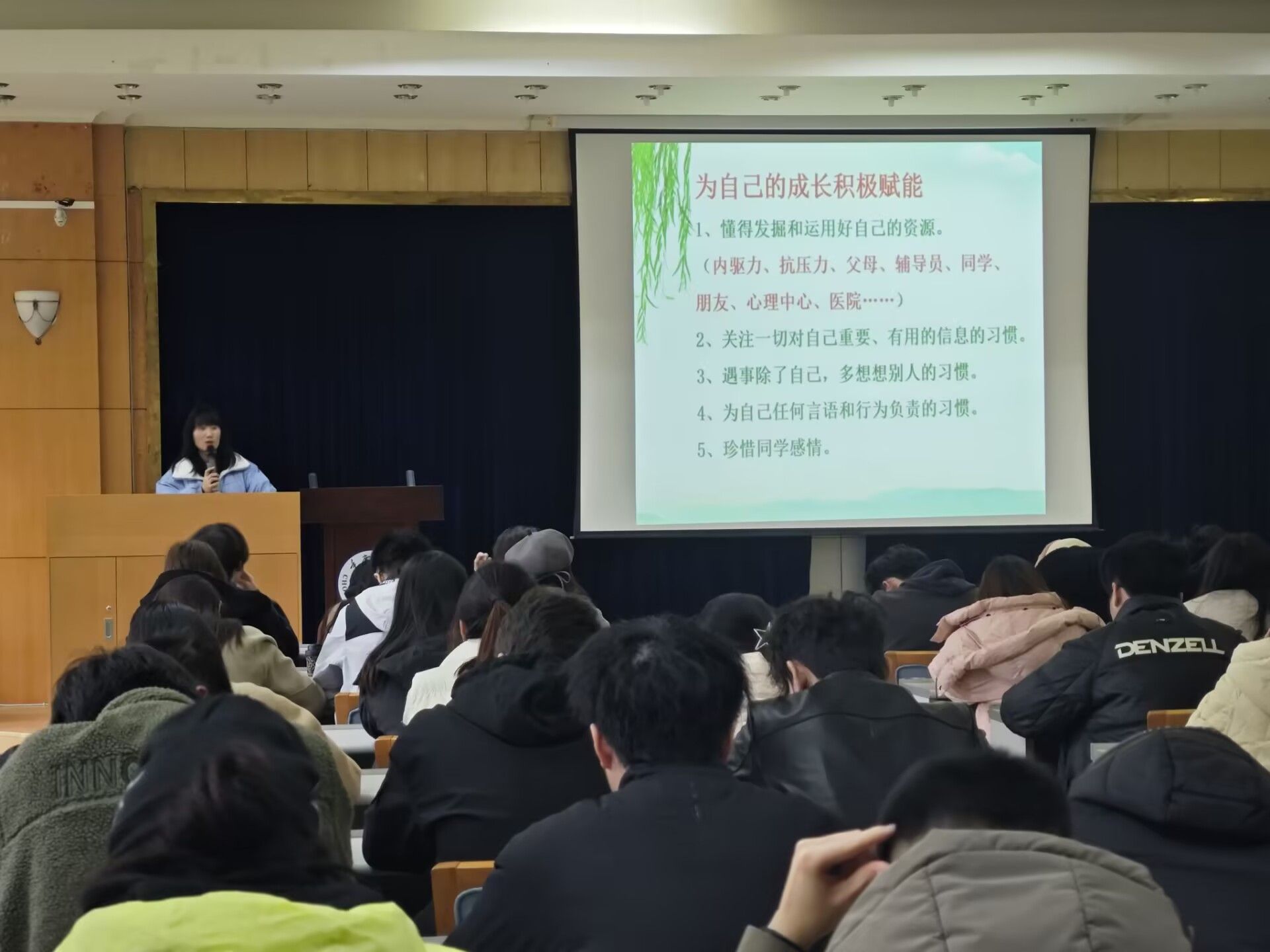 和年级将要开展的活动计划,包括2025年春季运动会、承办全校心理文化节世界微笑日主题活动、校园心理剧大赛等,旨在为同学们提供展示自我、锻炼能力的平台。徐老师鼓励同学们积极参与,抓住每一次拓展自我能力的机会,提升综合素质。